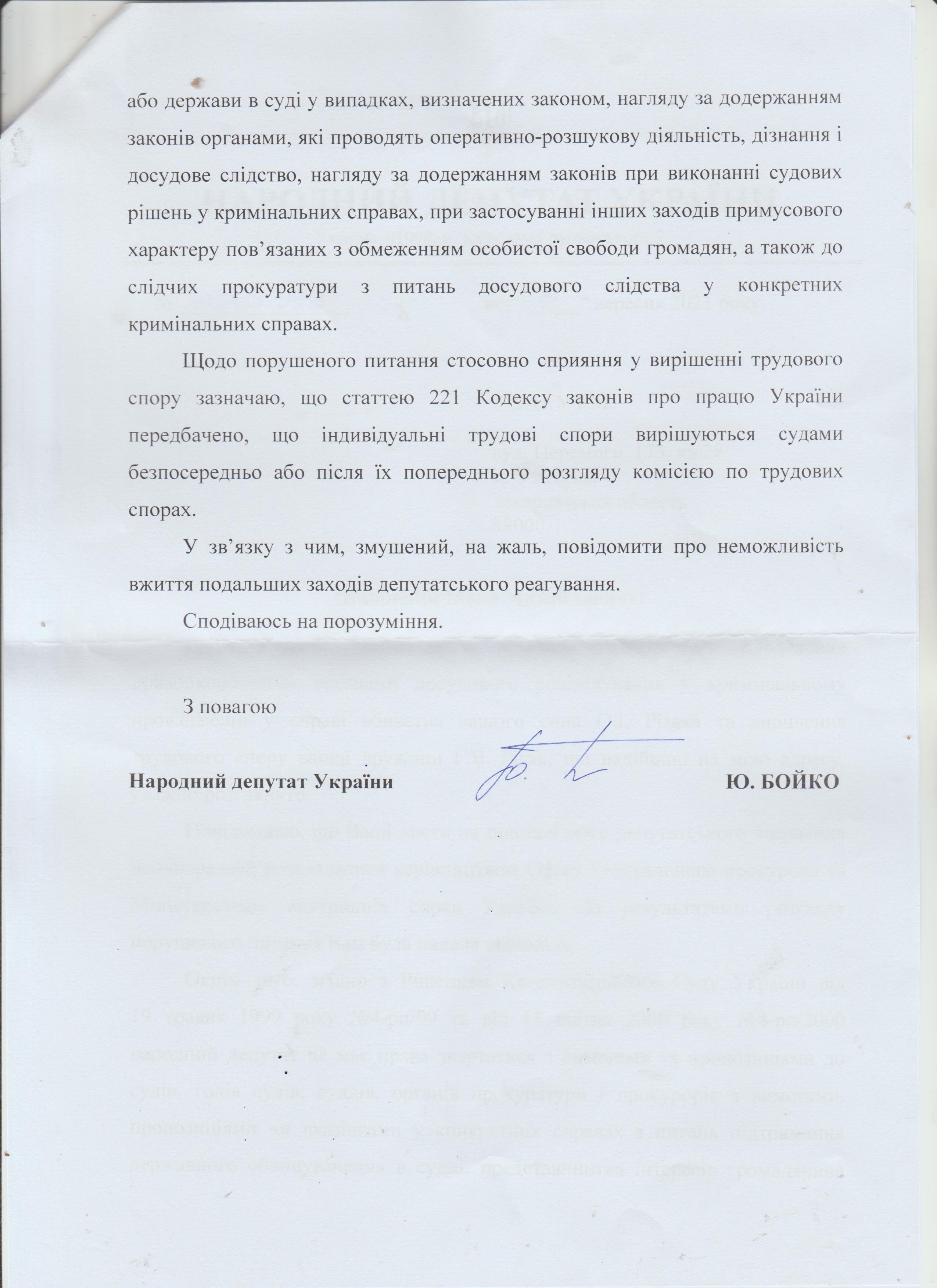 Дякуємо народному депутату України Юрію Бойку за реагування на звернення Івана Різака!