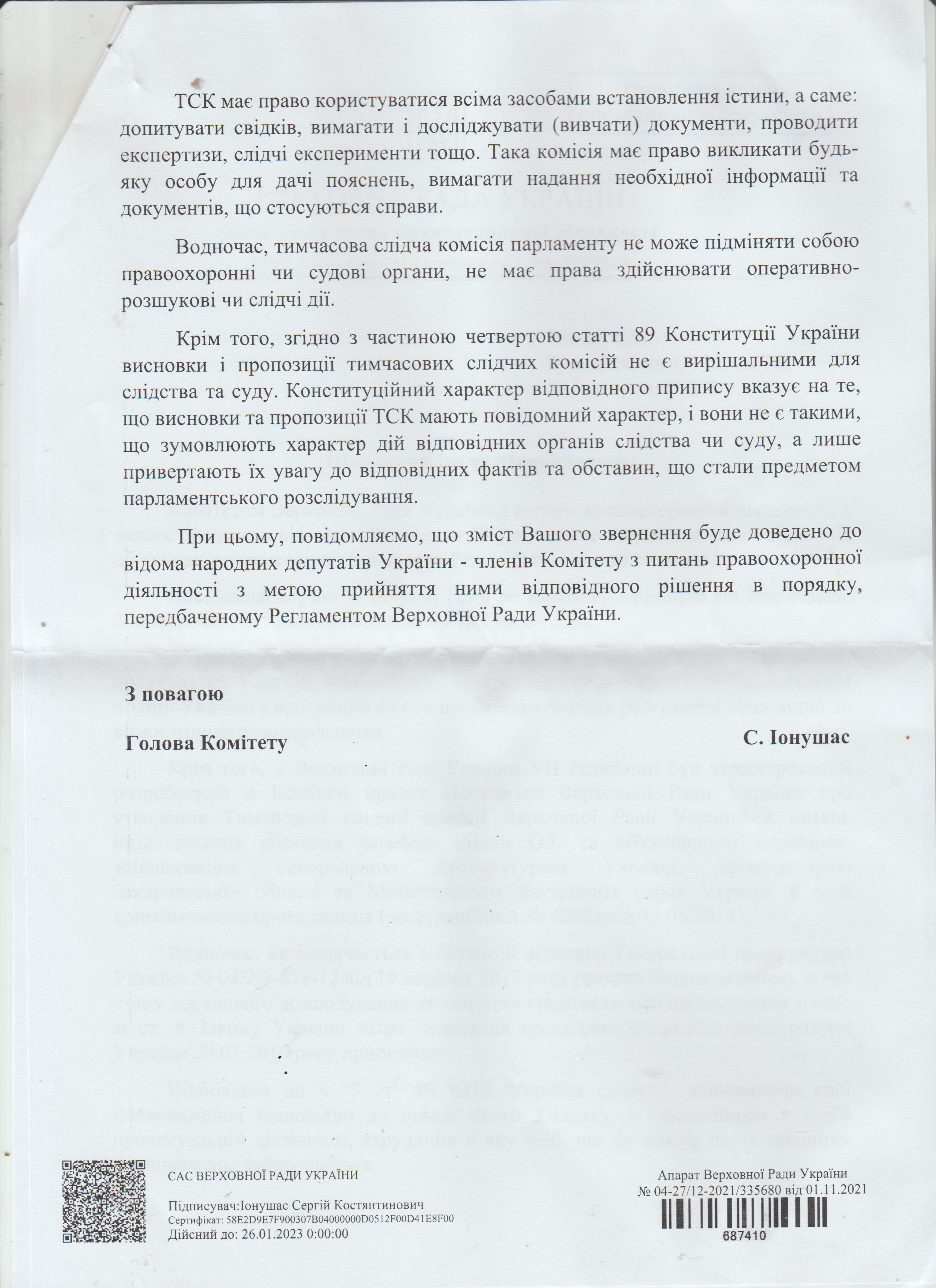 13.11.2021. Дякуємо Голові Комітету Верховної Ради України з питань правоохоронної діяльності Сергію Іонушасу