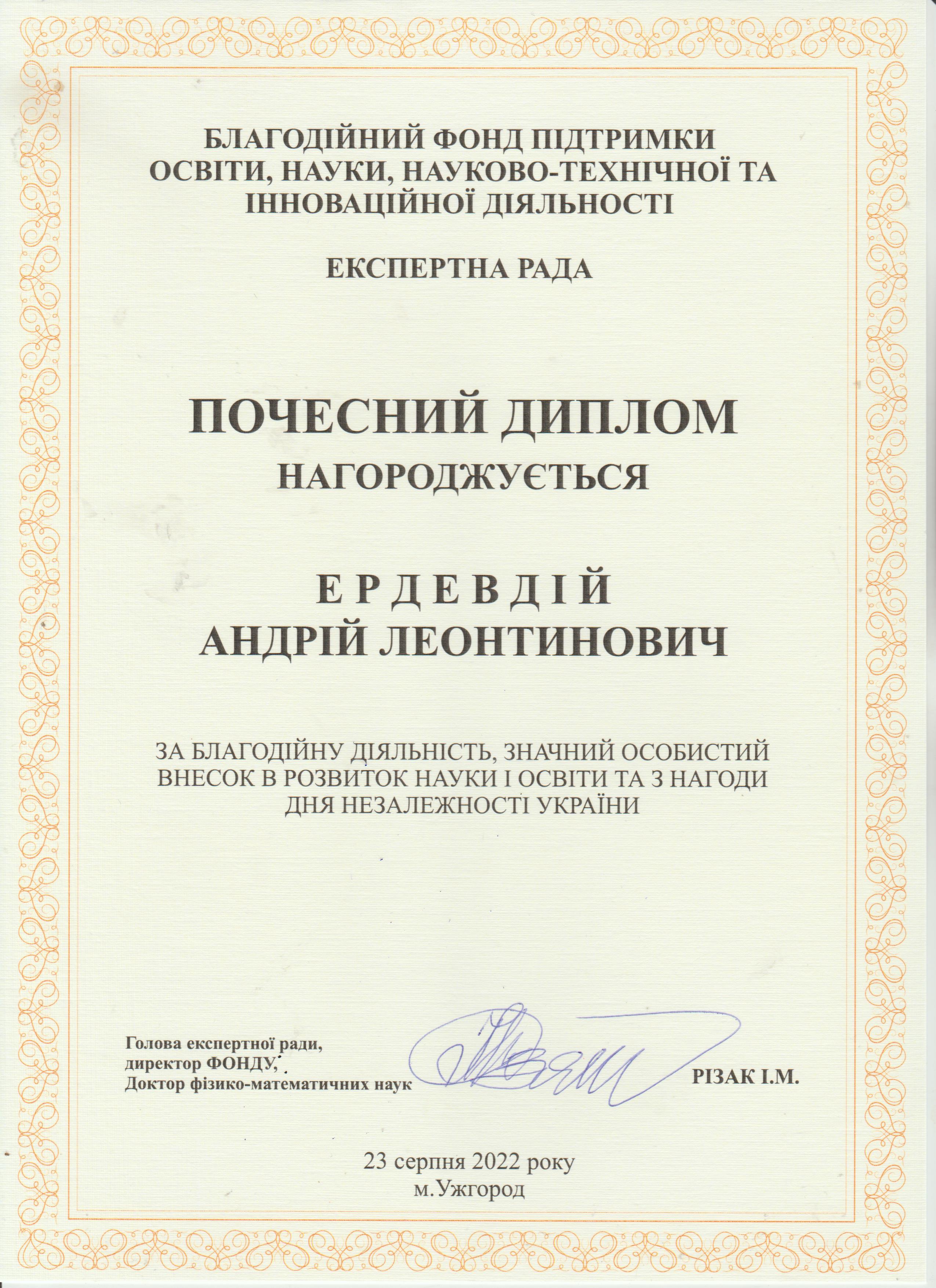 З повагою, доктор фізико-математичних наук, професор, Заслужений діяч науки і техніки України Василь Різак