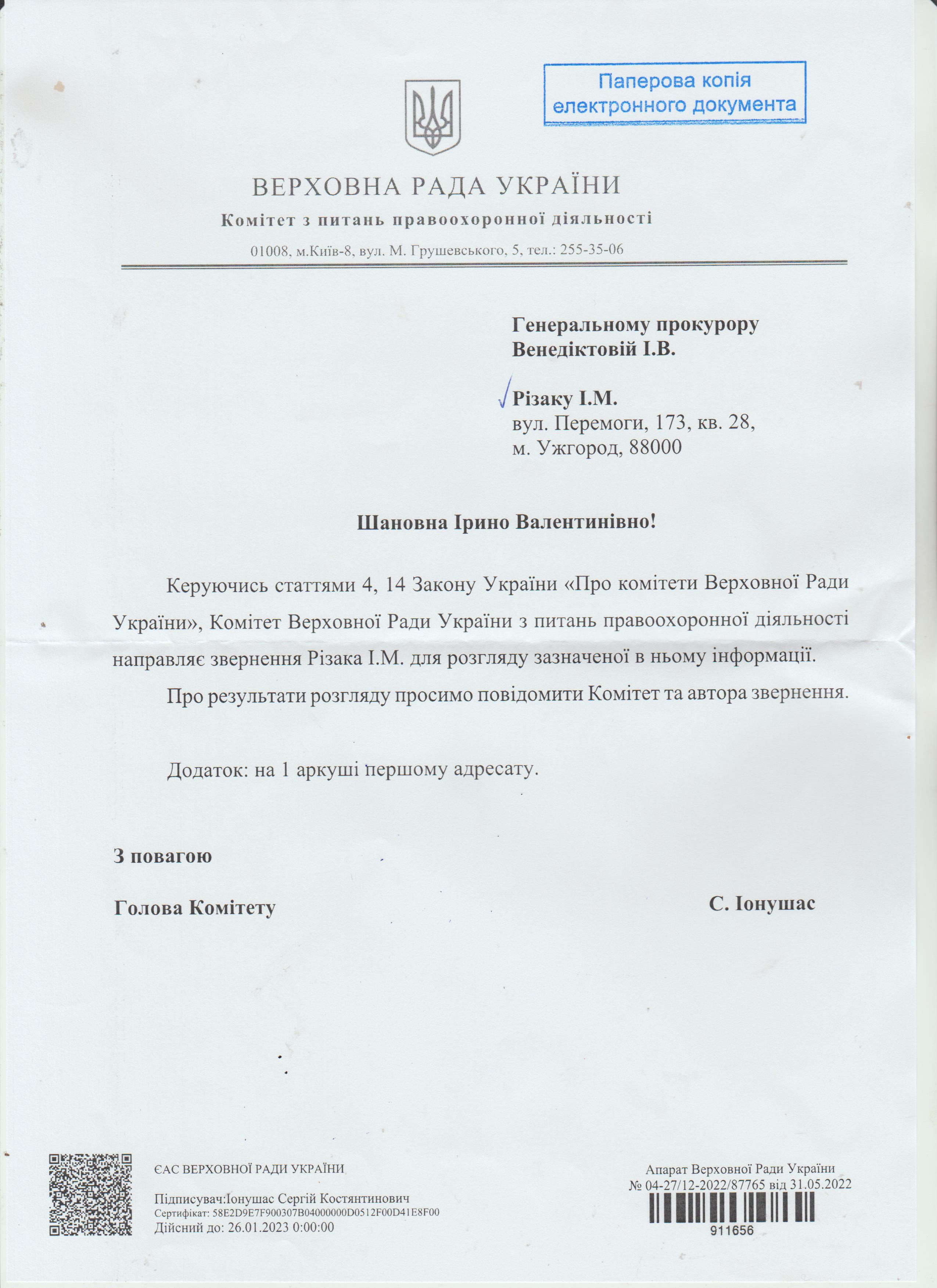 Є необхідність ознайомитися з матеріалами (зверненнями, повідомленнями, відповіддями тп ін.) в Генеральній прокуратурі України, СБУ, МВС, Службі зовнішньої розвідки України, Адміністрації Президента України, Закарпатській ОДА.