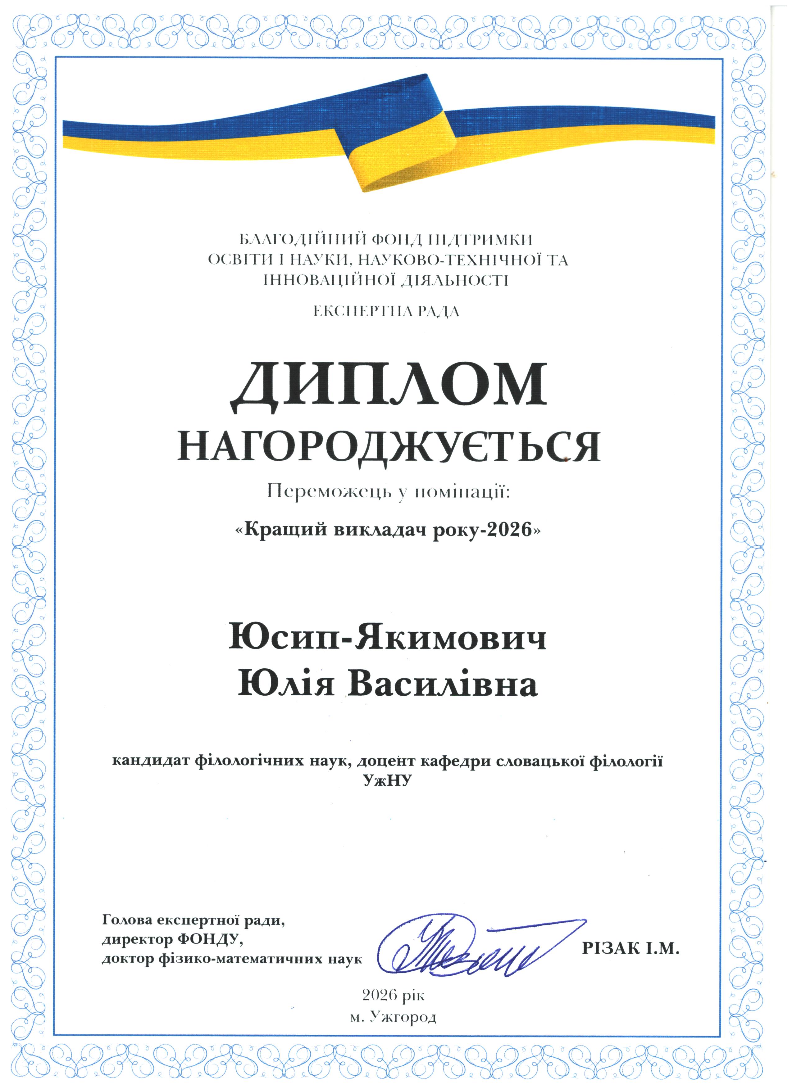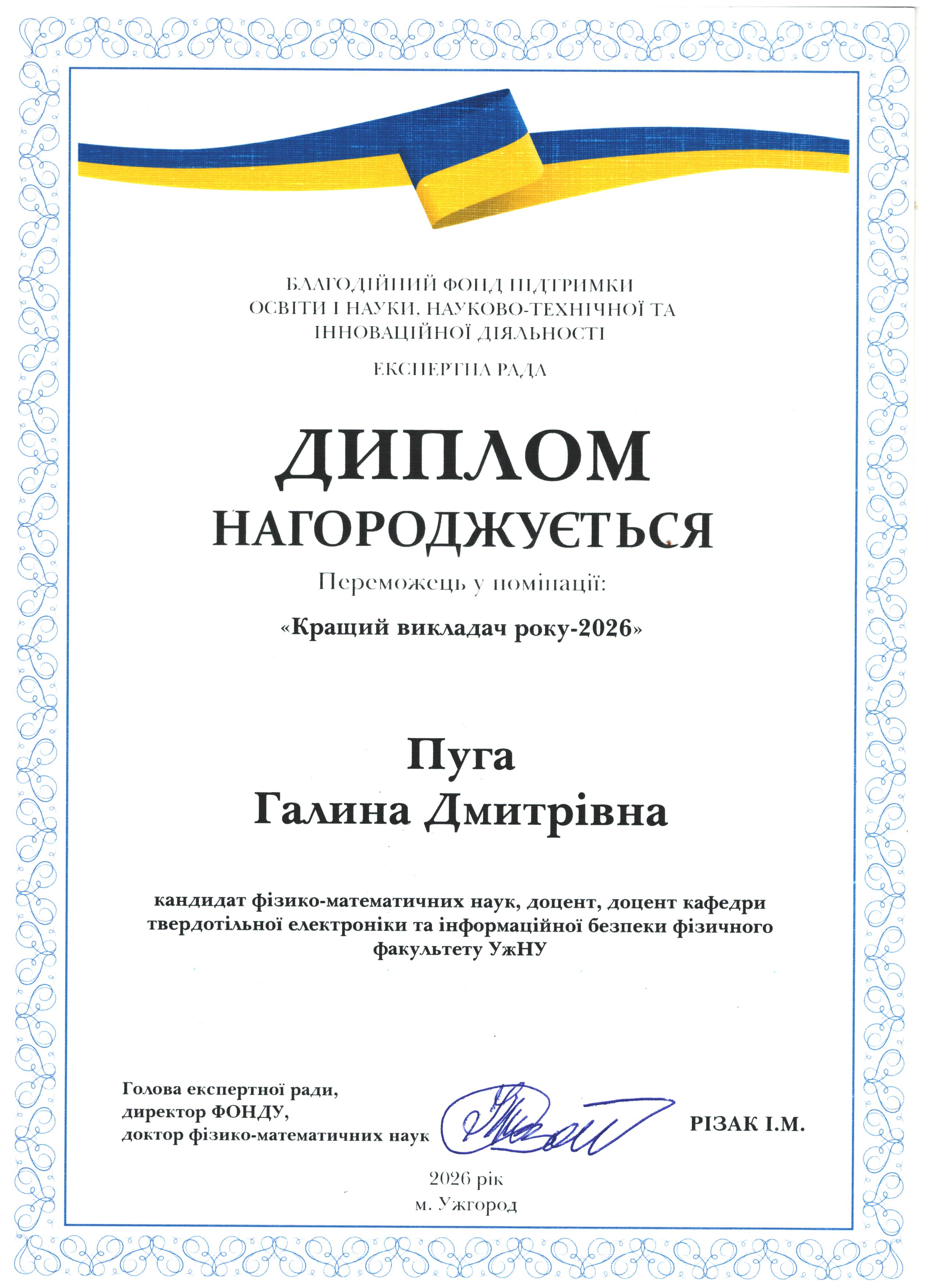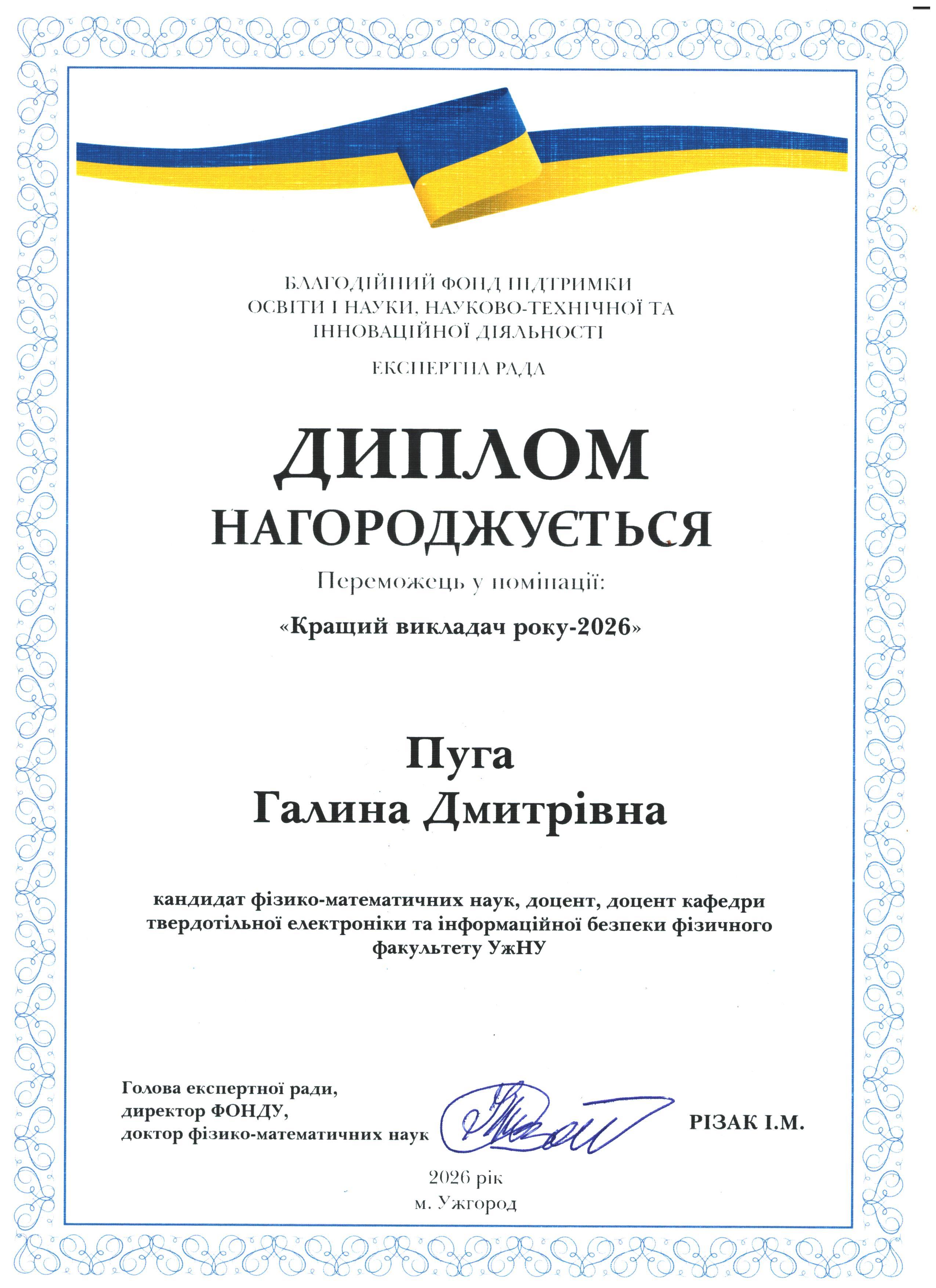 З повагою, доктор фізико-математичних наук, професор, Заслужений діяч науки і техніки України Василь Різак