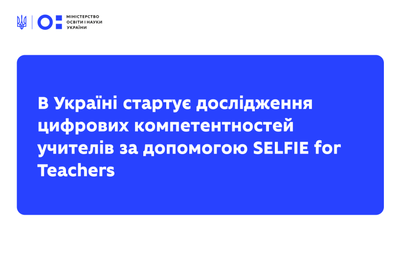 Автор фото – пресслужба Міністерства освіти і науки України Міністерством освіти і науки України спільно з Європейським фондом освіти (ETF) та в партнерстві з Генеральним директоратом з питань освіти, молоді, спорту та культури Європейської комісії (EC-DG EAC) та Міністерством цифрової трансформації України розпочато національне дослідження для оцінювання цифрових компетентностей учителів початкової та середньої освіти в Україні за допомогою SELFIE for Teachers.