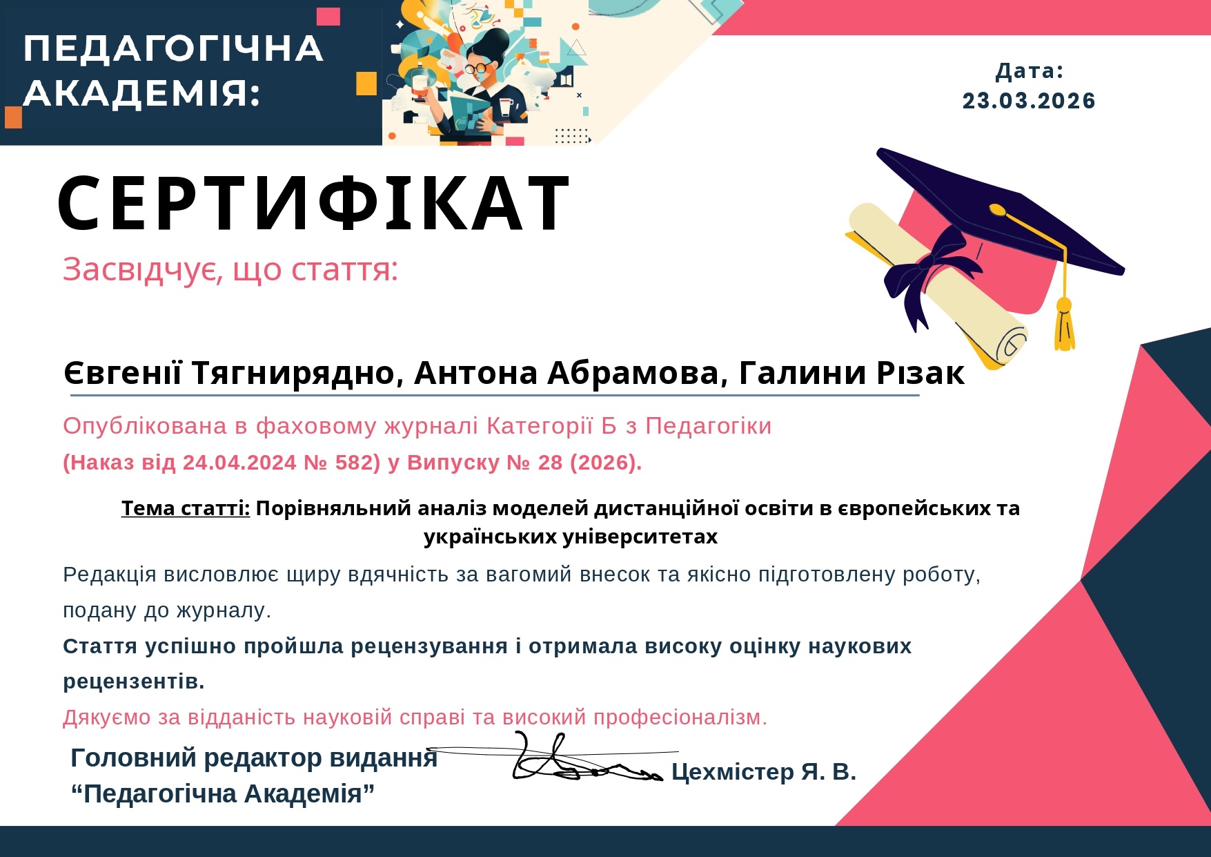 Попри складні соціально-економічні умови українські заклади вищої освітиактивно модернізують дистанційні практики, упроваджуючи цифрові платформи, хмарні йаналітичнісервіси, демонструючиспільну з європейськими університетами тенденцію до розвитку змішаних і гібридних моделей навчання.