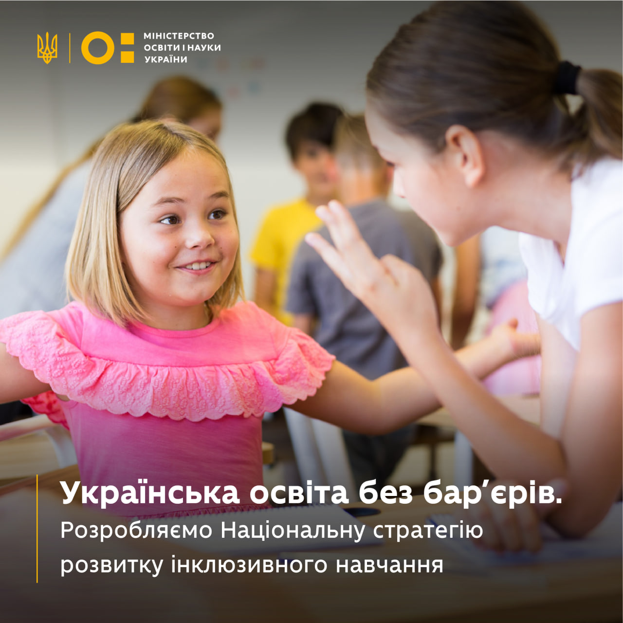 Освітнє середовище в Україні має стати інклюзивним, безбар’єрним та дружнім до учасників освітнього процесу. Для цього в межах Національної стратегії зі створення безбар’єрного простору Міністерство освіти і науки України реалізовує флагманський проєкт «Українська освіта без бар’єрів».