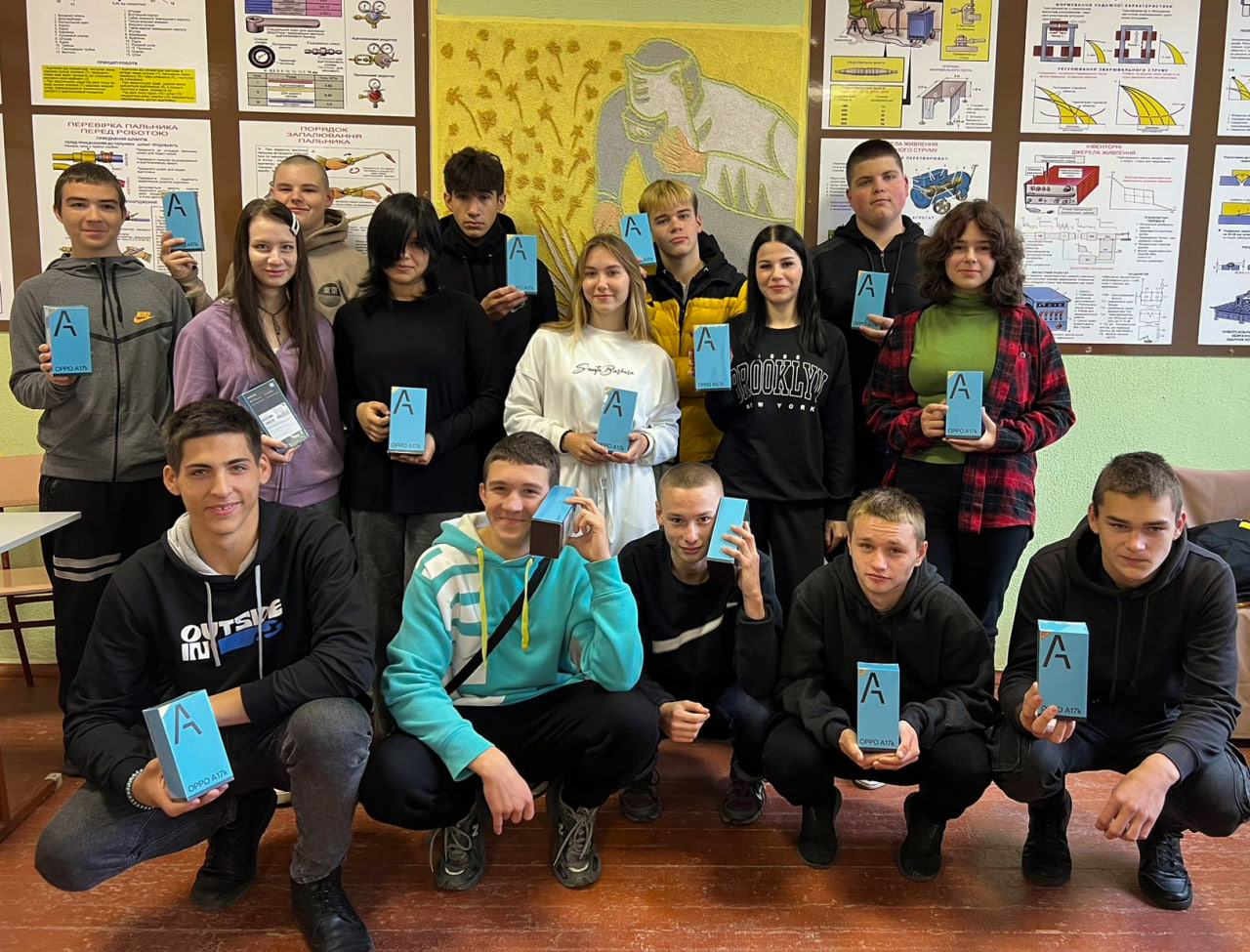 Техніку для навчання одержали представники Дніпропетровської, Донецької, Запорізької, Луганської, Миколаївської, Харківської та Херсонської областей. Телефони подарували студентам закладів професійно-технічної освіти з малозабезпечених сімей.