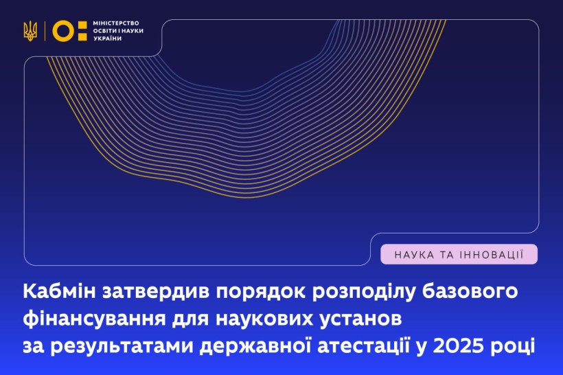 30 липня 2025 року Кабінет Міністрів України ухвалив постанову, якою визначено порядок розподілу коштів базового фінансування основної діяльності державних наукових установ у 2025 році.