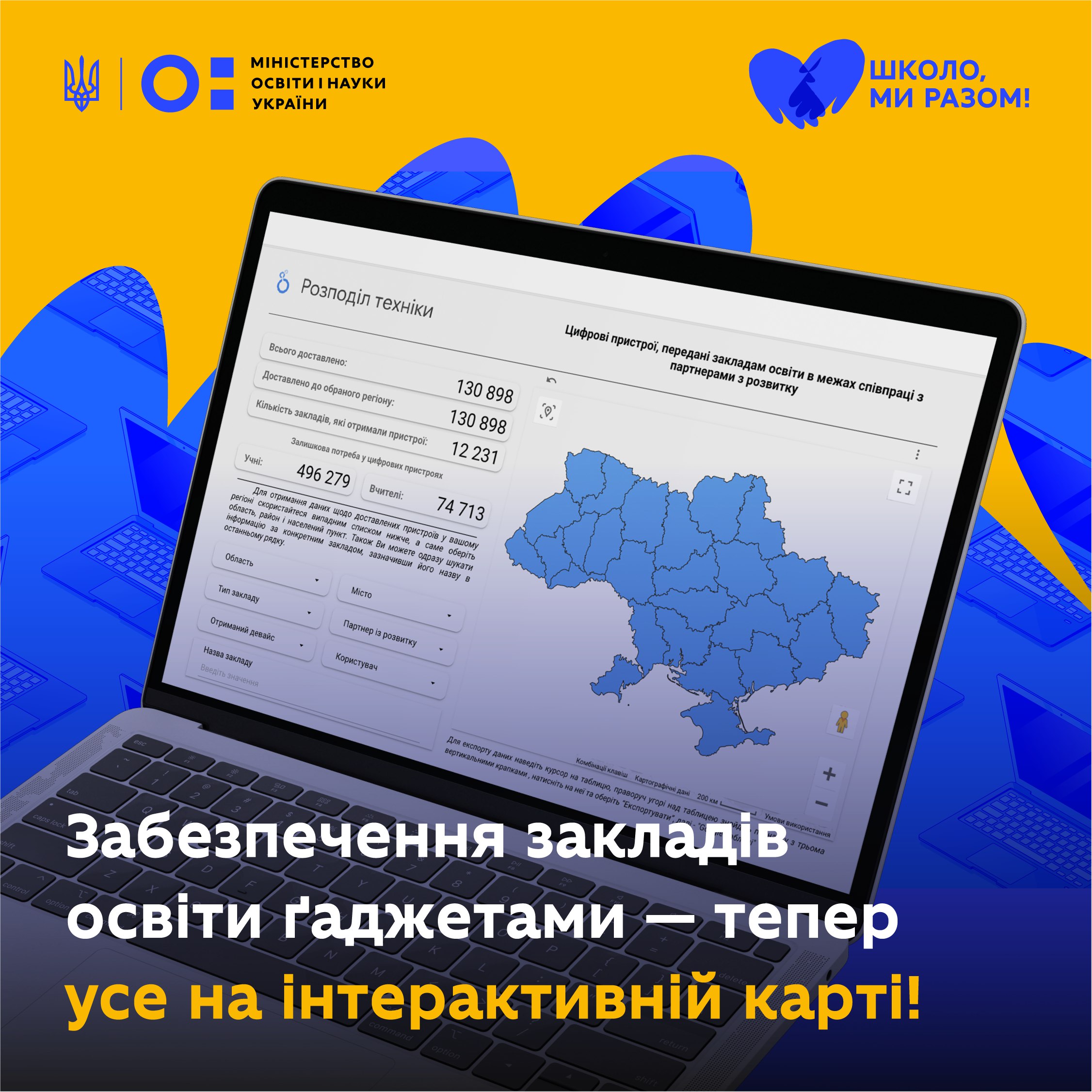 МОН разом із Мінцифрою запускають публічну інформаційну панель — дашборд! У ньому розміщено інформацію про розподіл компʼютерного обладнання, яке передають партнери з розвитку для задоволення освітніх потреб і забезпечення доступу до освіти учнів і вчителів в умовах війни.
