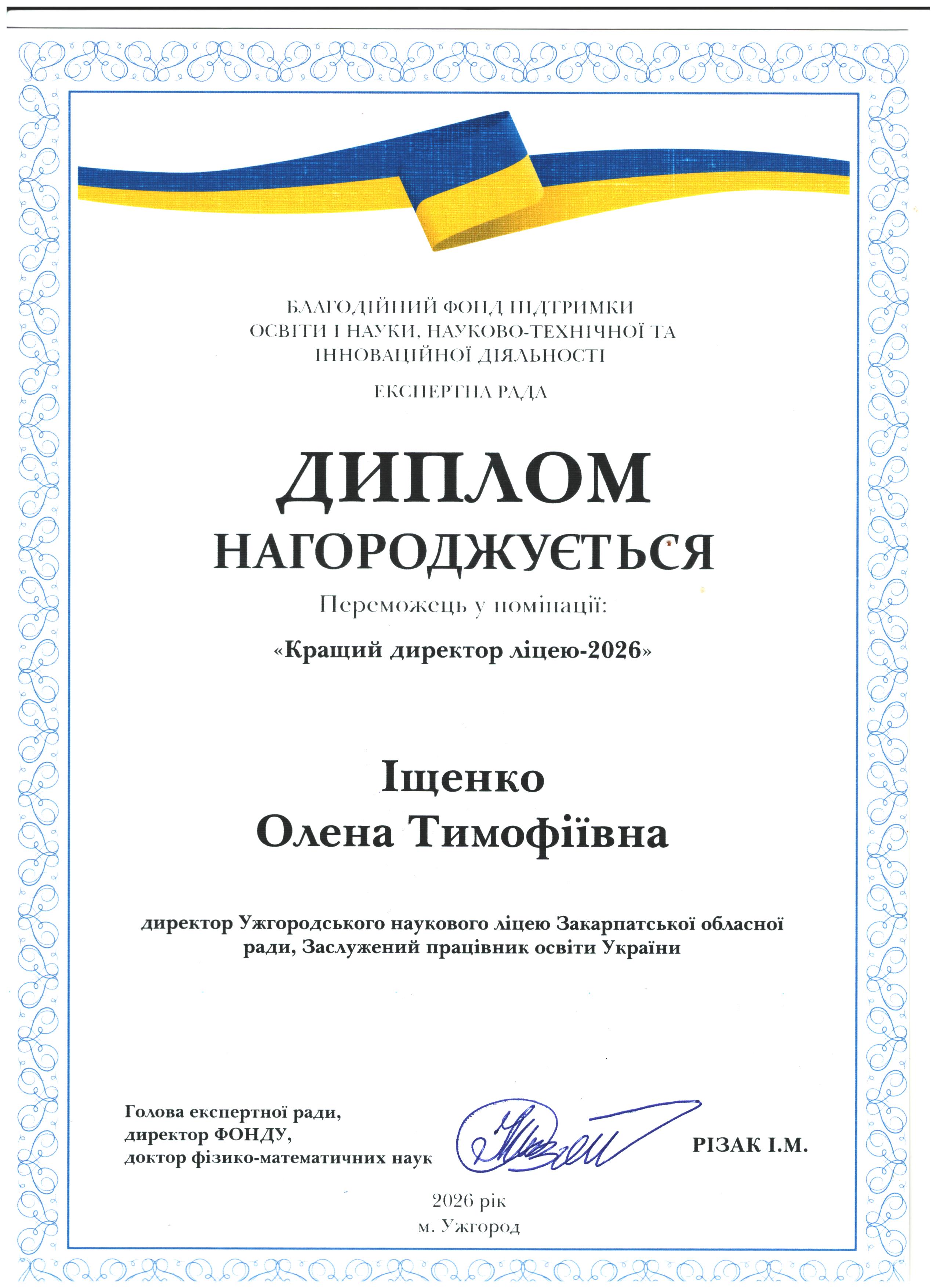 Вітаємо Олену Тимофіївну Іщенко з перемогою у номінації "Кращий директор ліцею -2026"