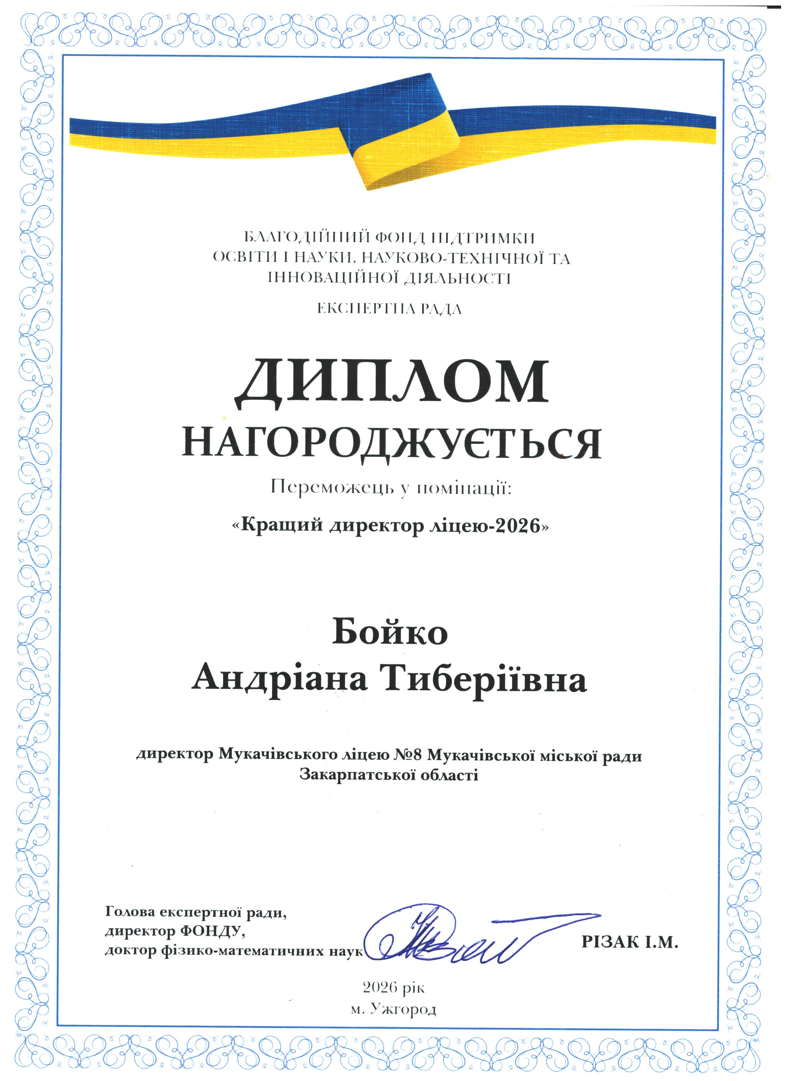 Вітаємо Адріанну Тиберіївну Бойко з перемогою у номінації "Кращий директор ліцею -2026"