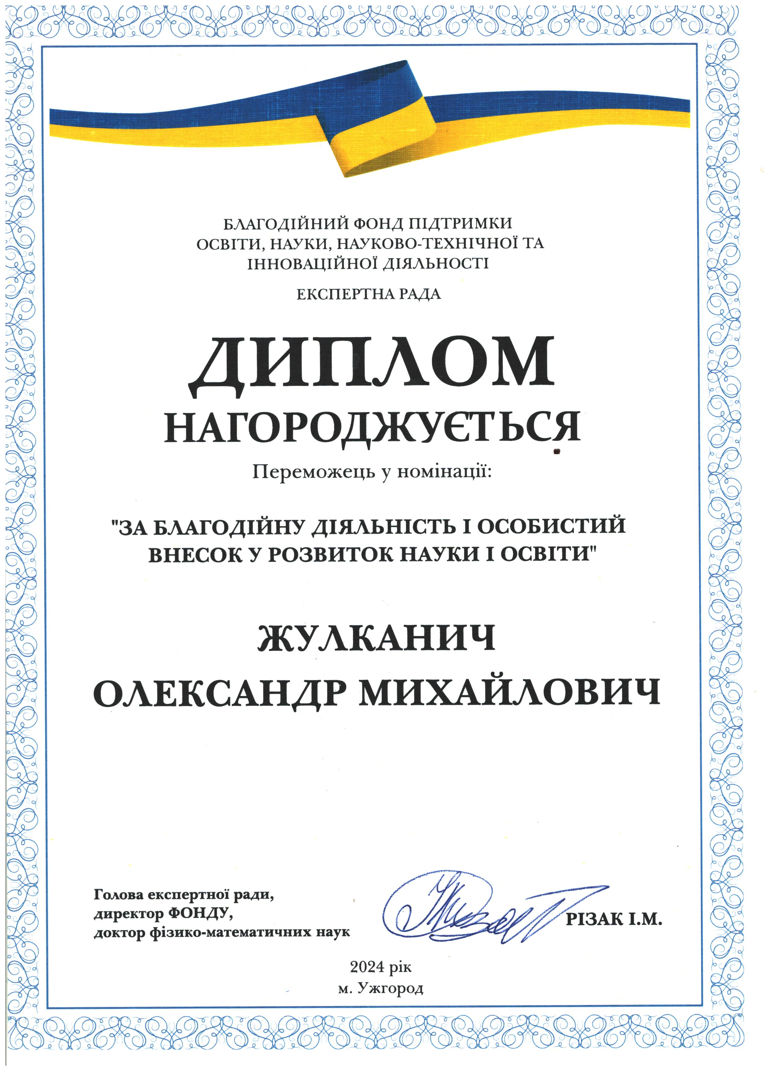 Дякуємо Олександру Михайловичу Жулканичу за сприяння у розвитку науки і освіти Закарпаття!