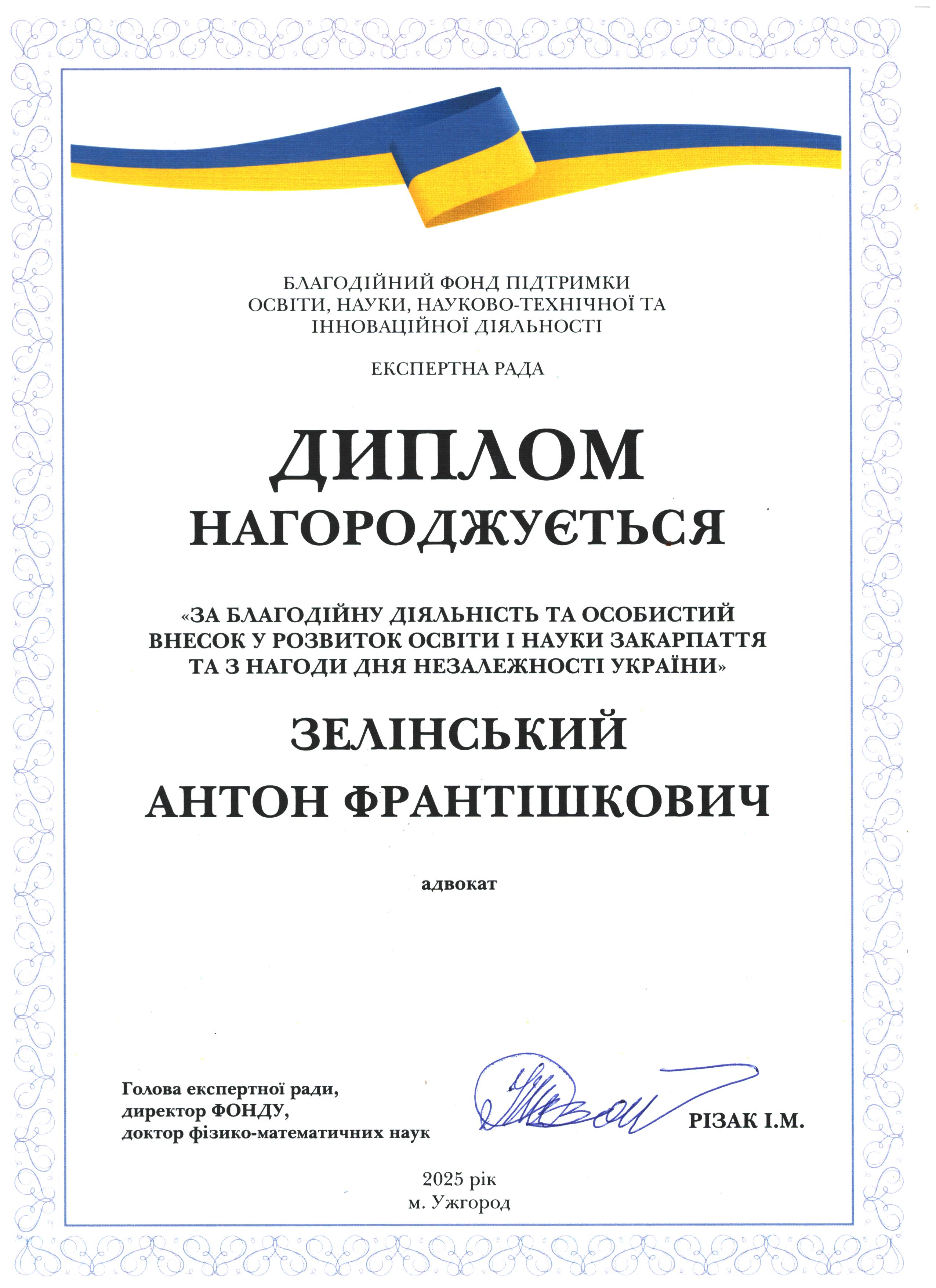 Дякуємо Антону Франтішковичу Зелінському за підтримку освіти і науки Закарпаття!