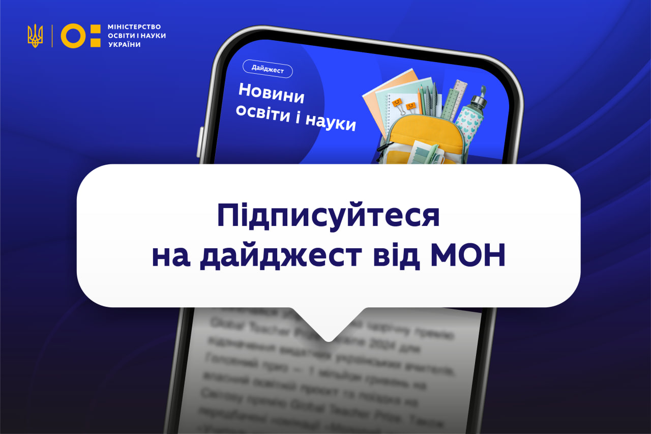 Добірки структуруємо за такими напрямами: дошкілля; шкільна освіта; вища освіта; наука та інновації. Щоб отримувати дайджест від МОН, заповнюйте форму.
