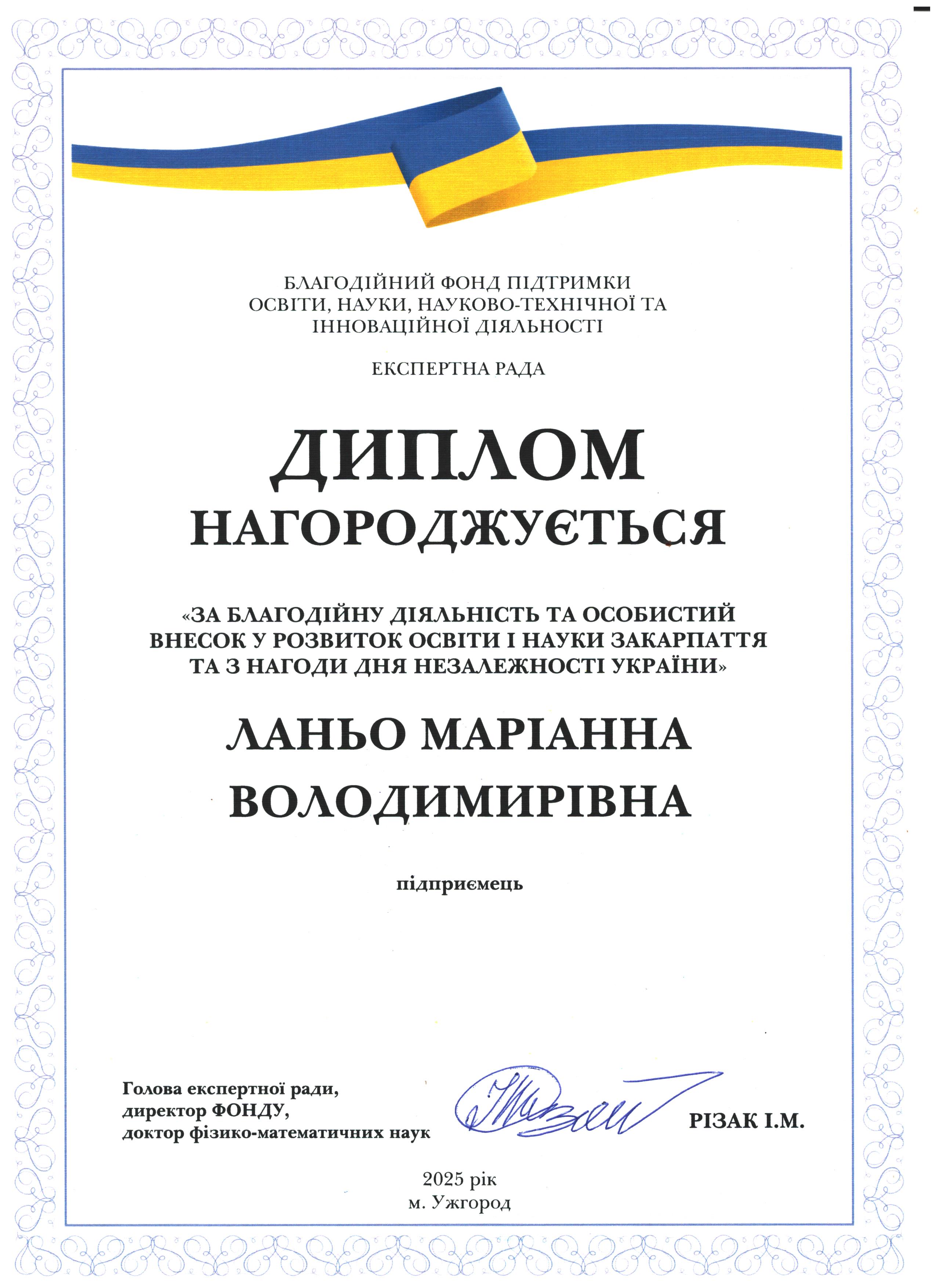 Дякуємо Маріанні Володимирівні Ланьо за підтримку освіти і науки Закарпаття!