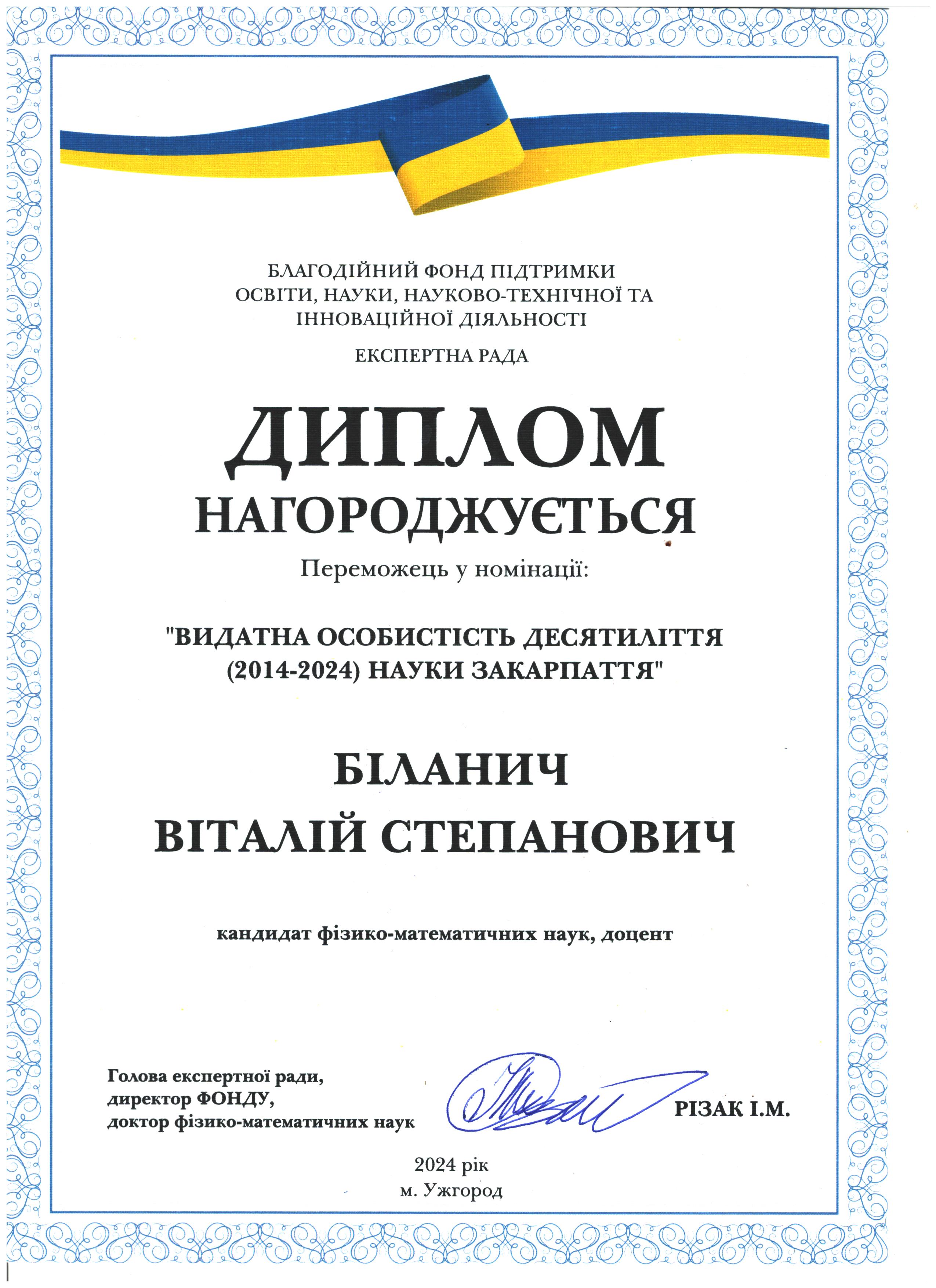Вітаємо Віталія Степановича Біланича з перемогою у номінації "Видатна особистість десятиліття (2014-2024) науки Закарпаття"!