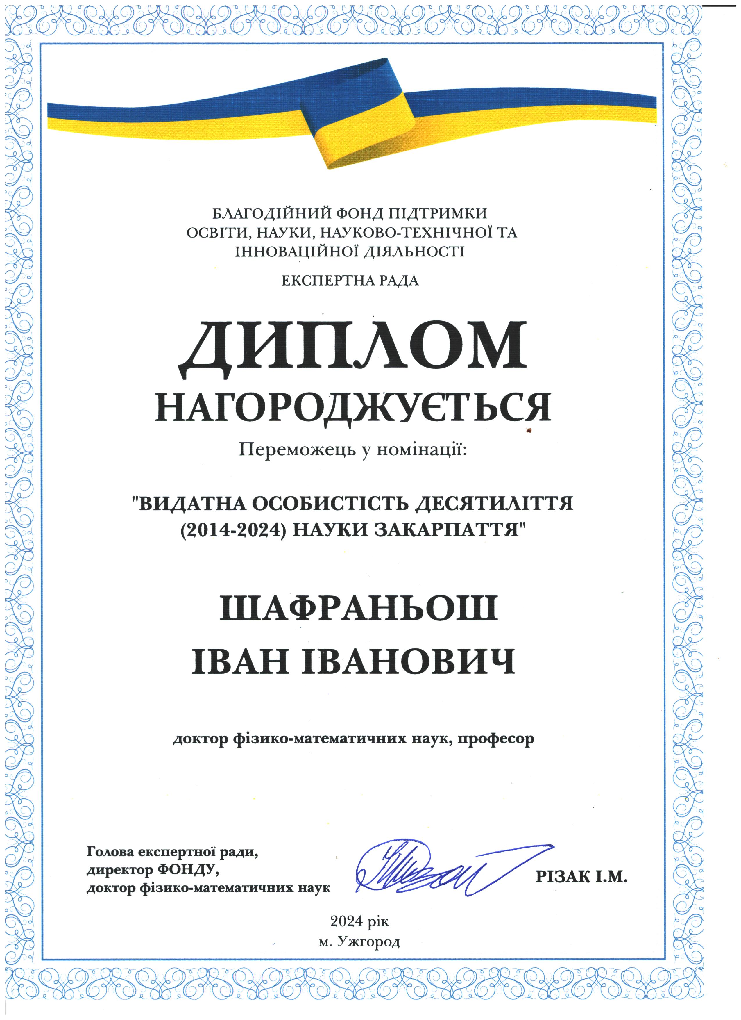 Вітаємо Івана Івановича Шафраньоша з перемогою у номінації "Видатна особистість десятиліття (2014-2024) науки Закарпаття"!