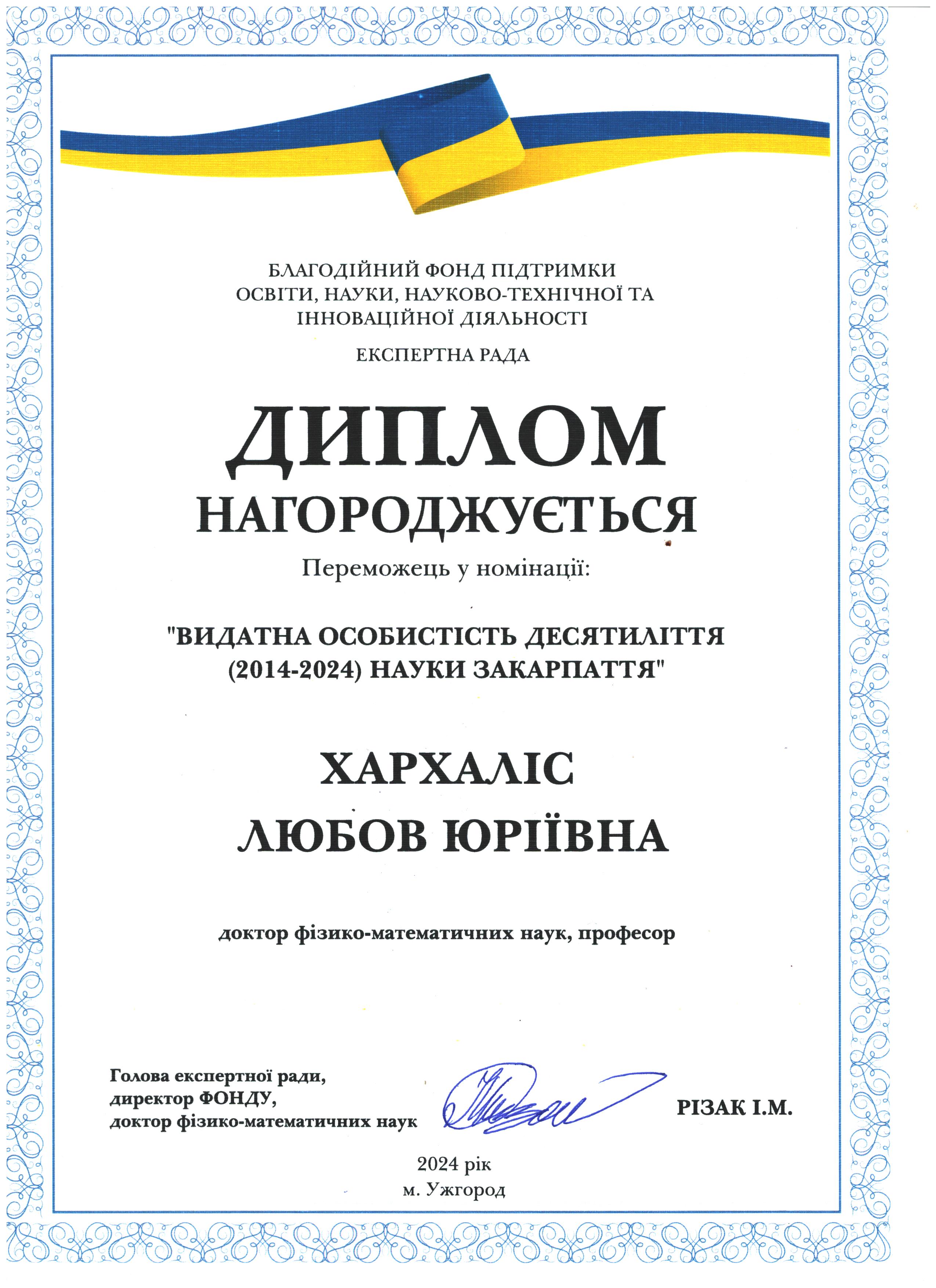 Вітаємо Любов Юріївну Хархаліс з перемогою у номінації "Видатна особистість десятиліття (2014-2024) науки Закарпаття!