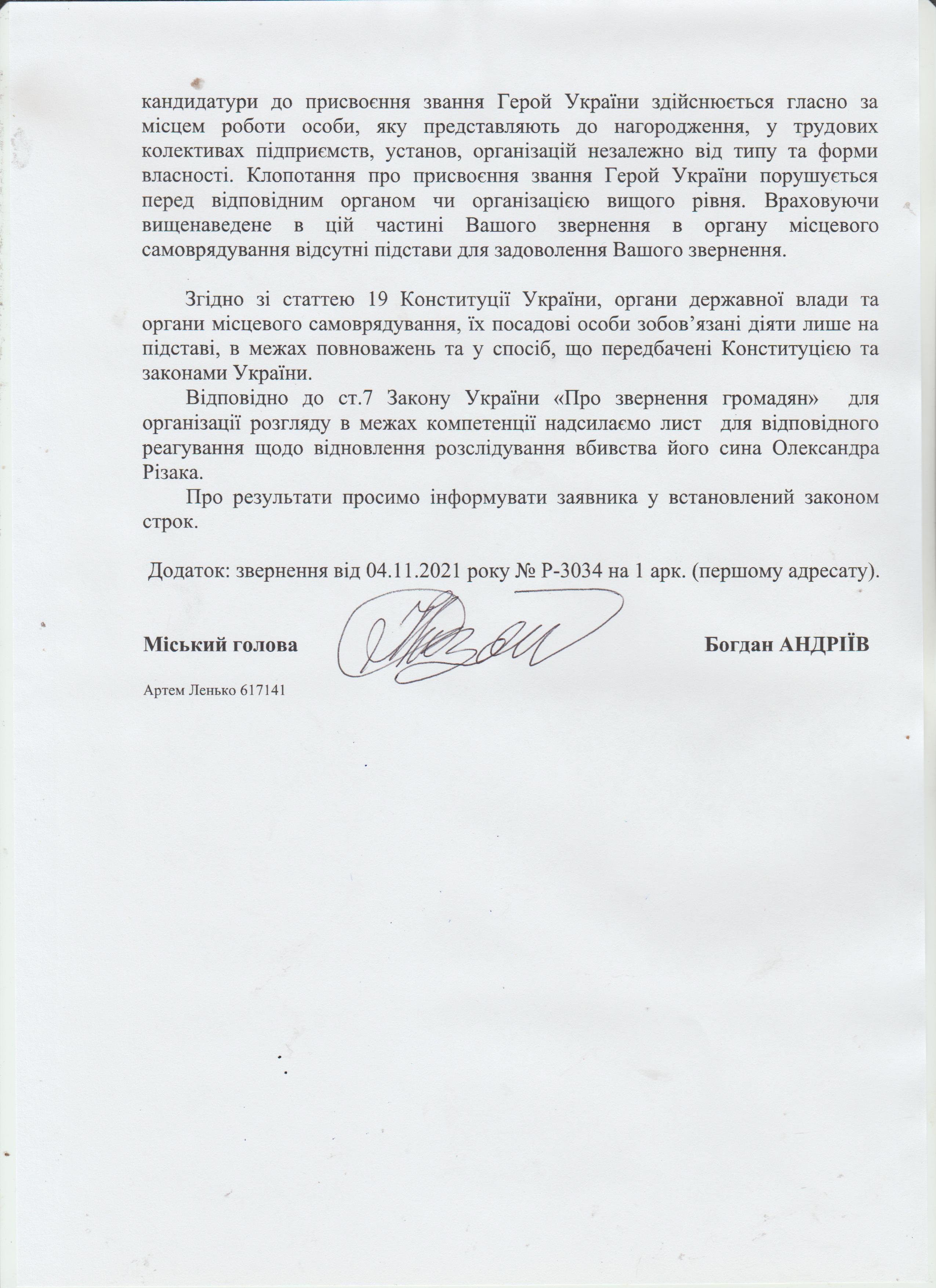 05.11.2021. Відповідь Ужгородського міського голови Богдана Андрїва. Дякуємо!