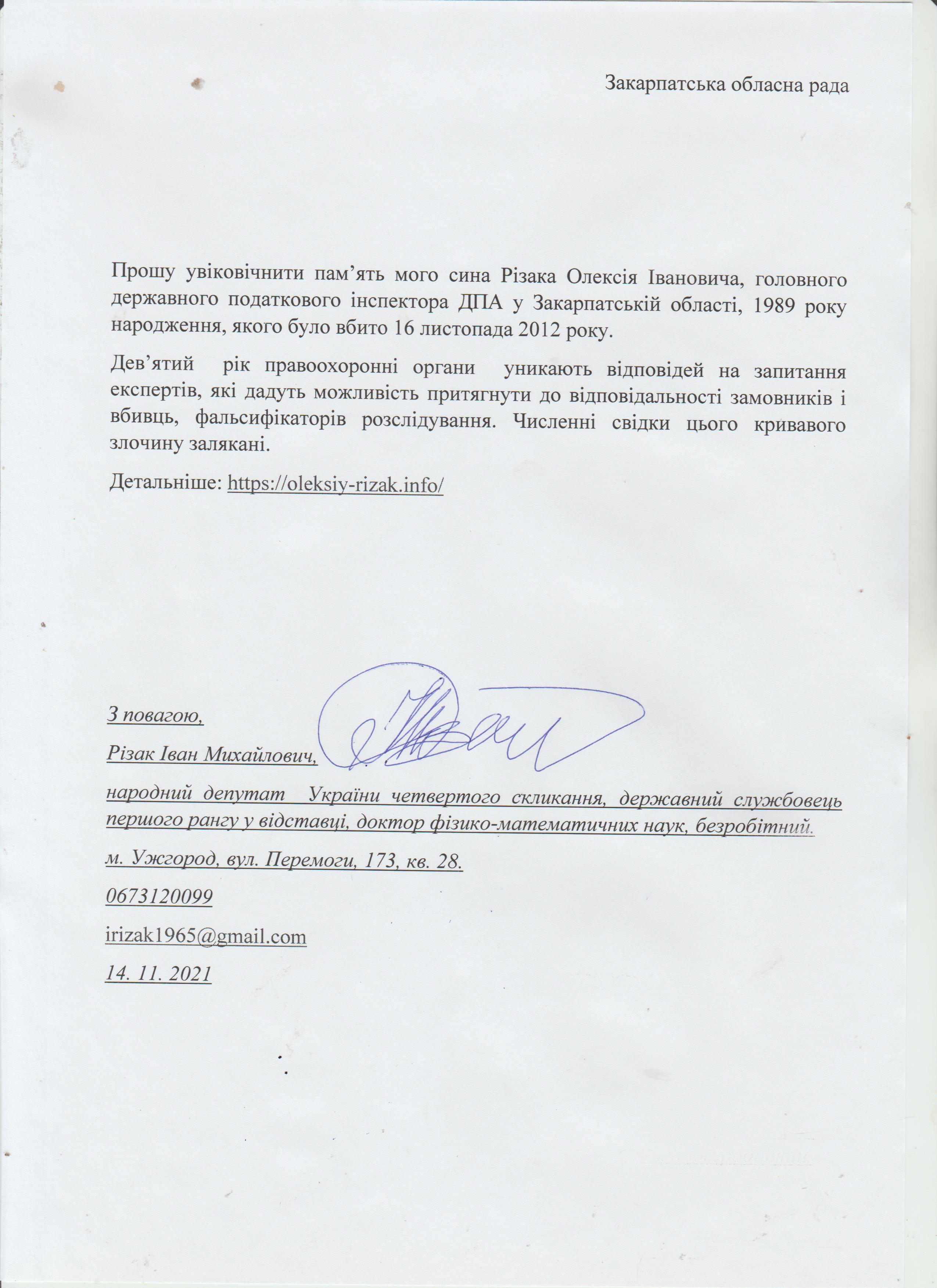 19.11. 2021. Важливе звернення Івана Різака до Закарпатської обласної ради