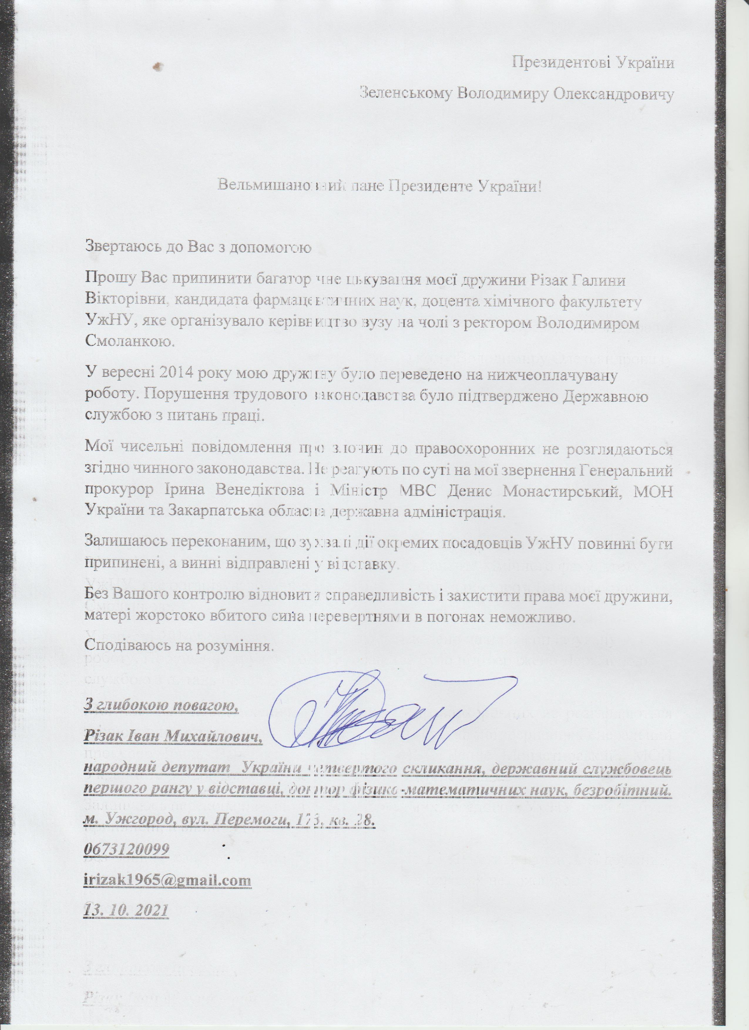 19.10.2021. Відповідь на звернення Івана Різака до Глави держави