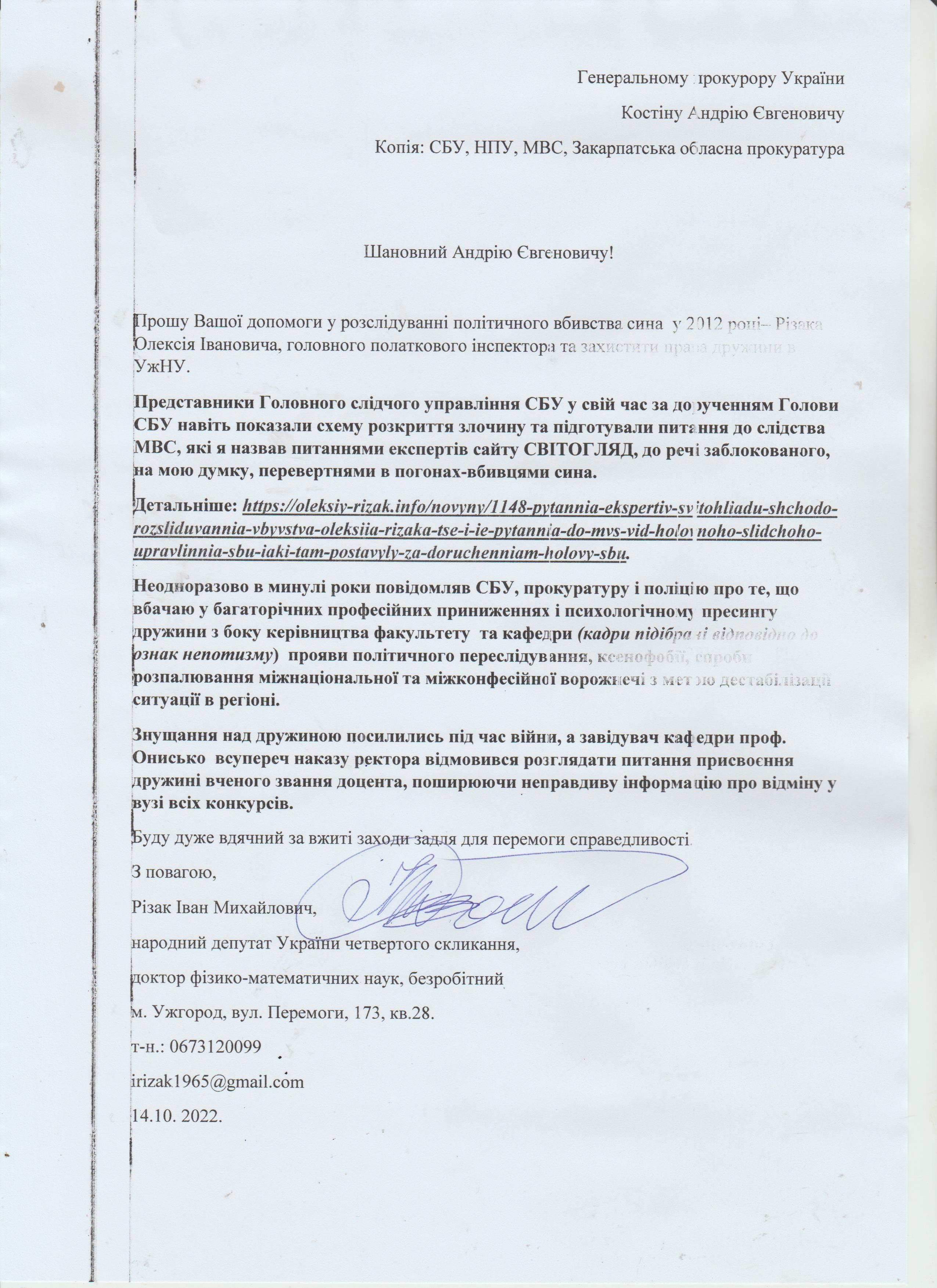 Скільки ще потрібно звернень і доказів, щоб усунути Ониська з кумами і племінниками-ксенофобами від посад разом з їх кришами - перевертнями в погонах-убивцями Олексія Різака?