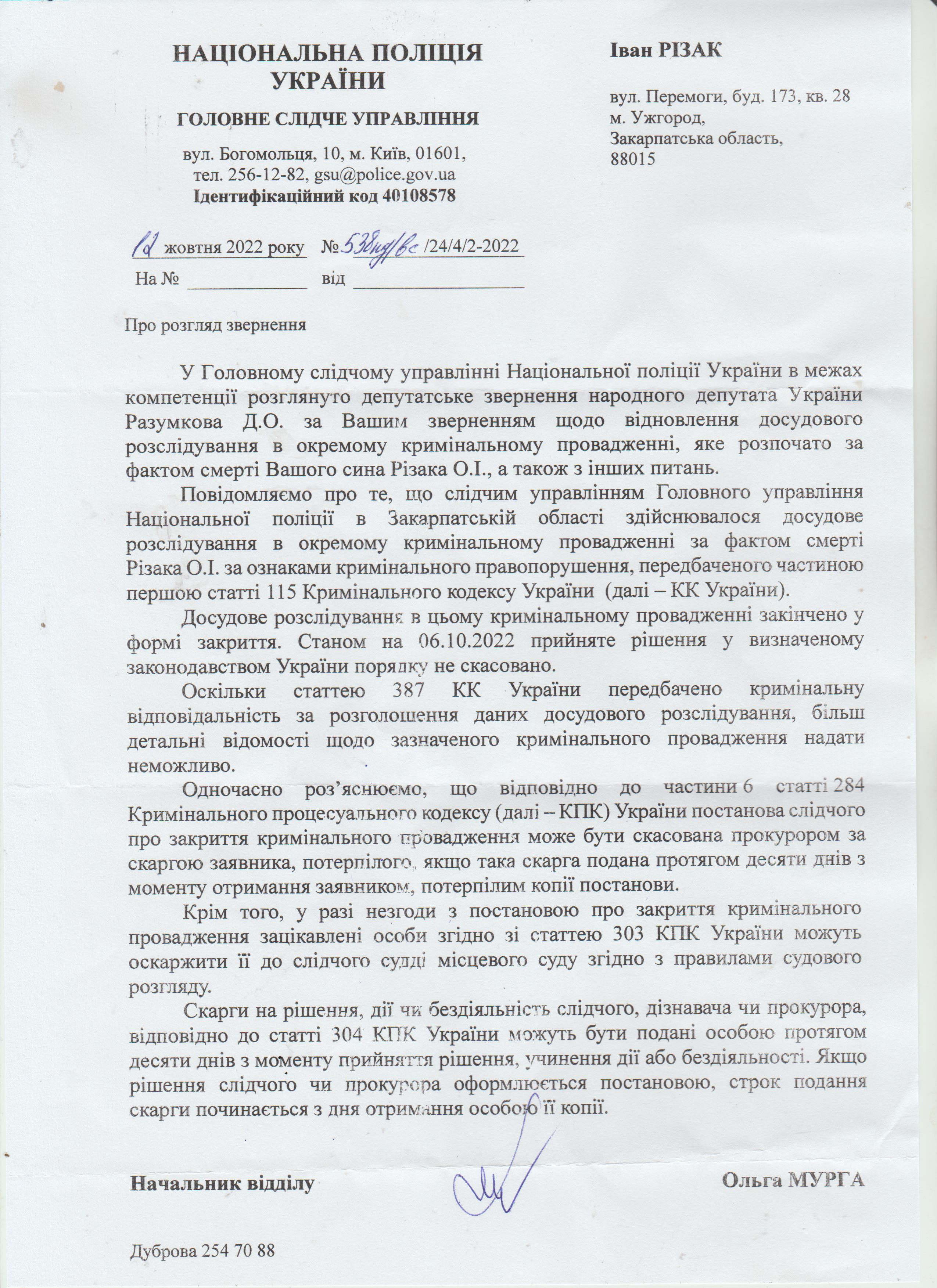 25.10.2022. Навіть через майже десять років НПУ боїться арештувати перевертнів в погонах - убивць Олексія Різака та чисельних фальсифікаторів розслідування.