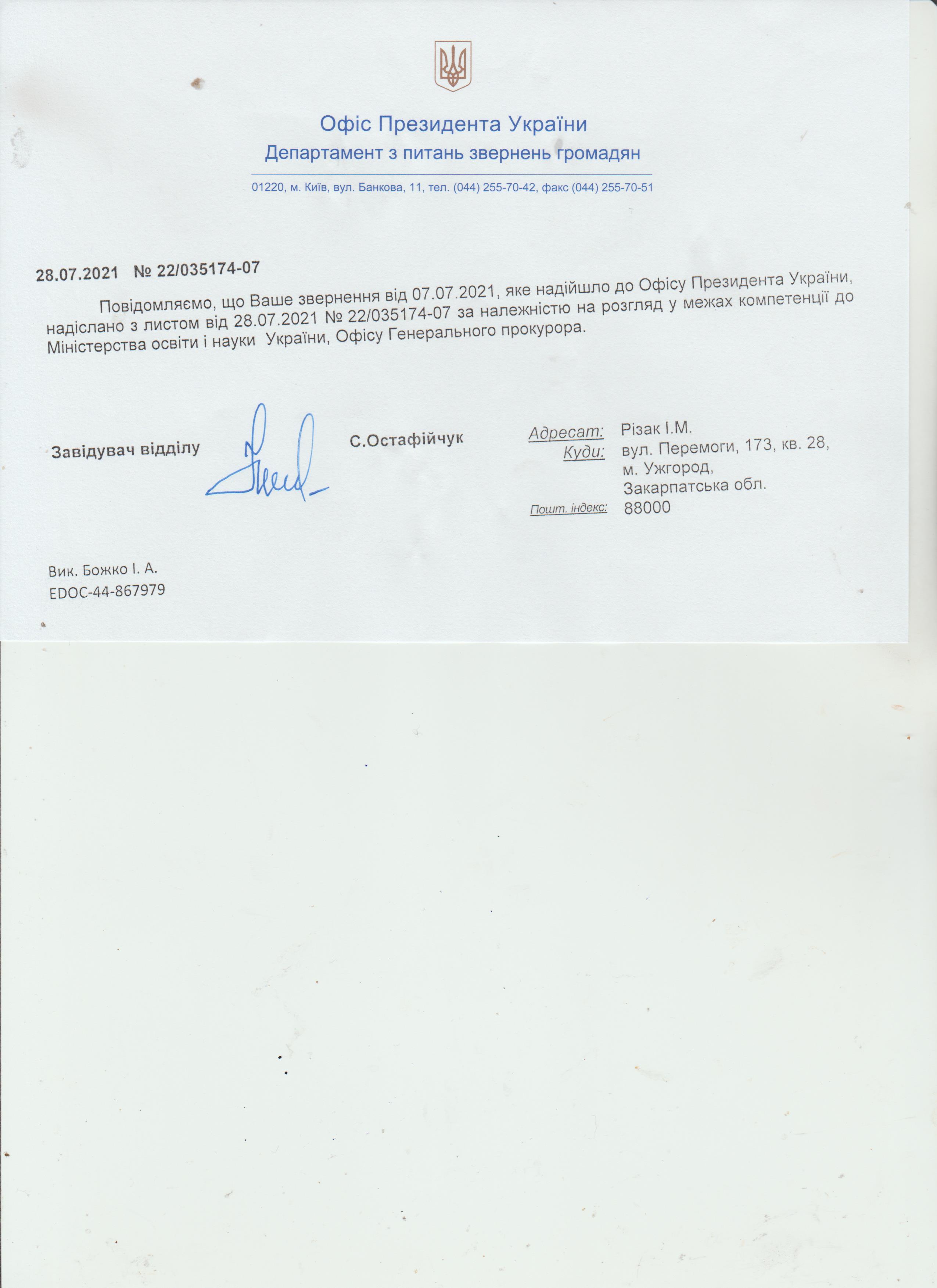 Генеральна прокуратура України продовжує ігнорувати звернення Івана Різака до Глави держави