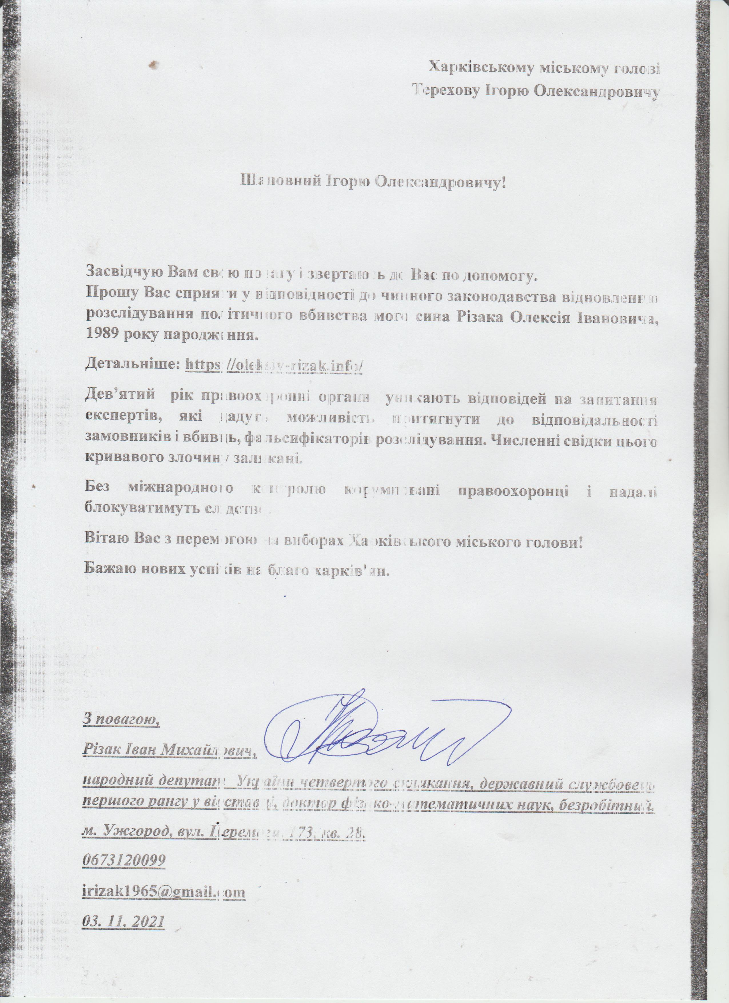 03.11.2021. Важливе звернення Івана Різака до Харківського міського голови Ігоря Терехова