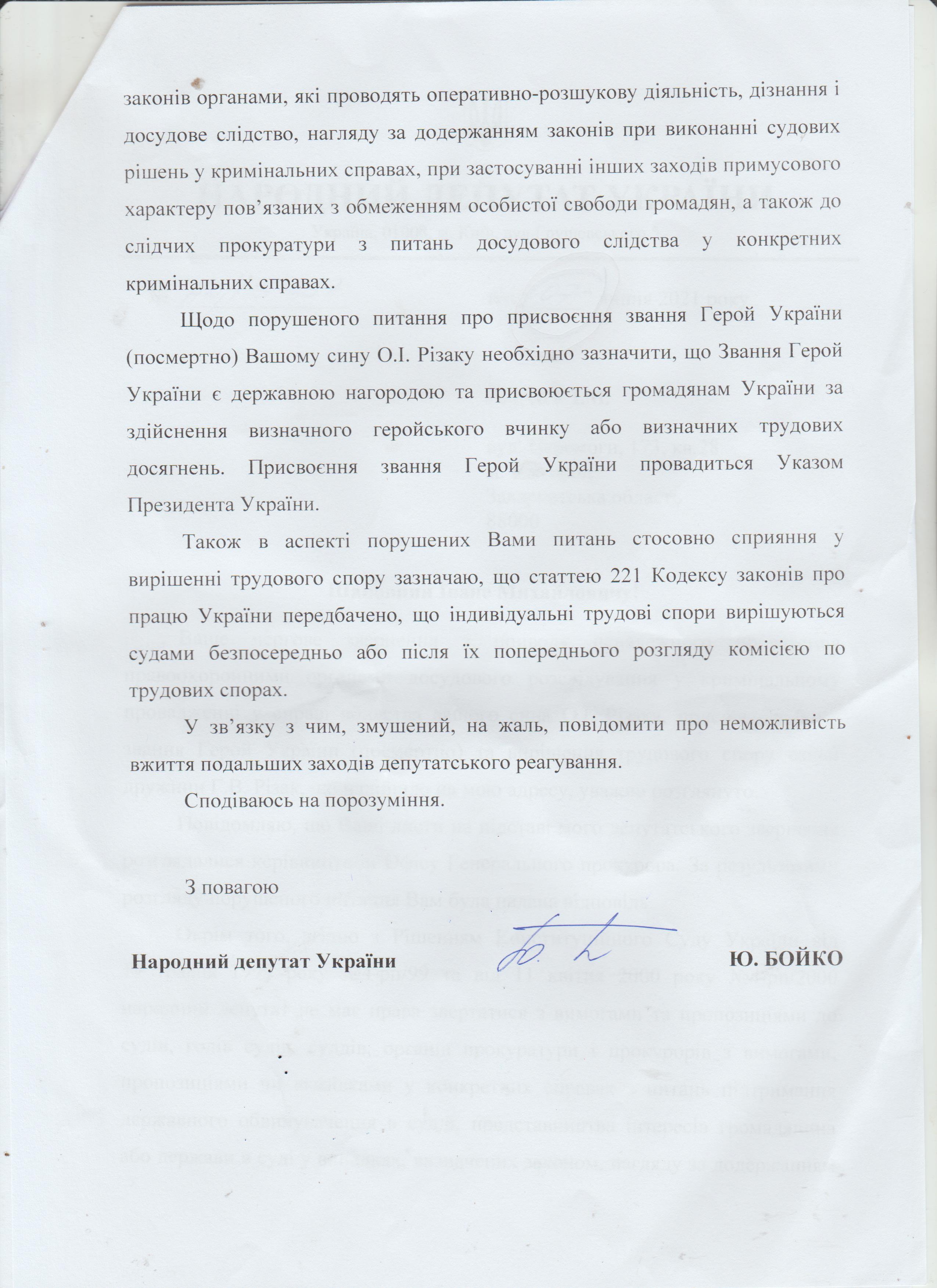 05.11. 2021.Дякуємо народному депутату України Юрію Бойку за реагування на звернення Івана Різака!