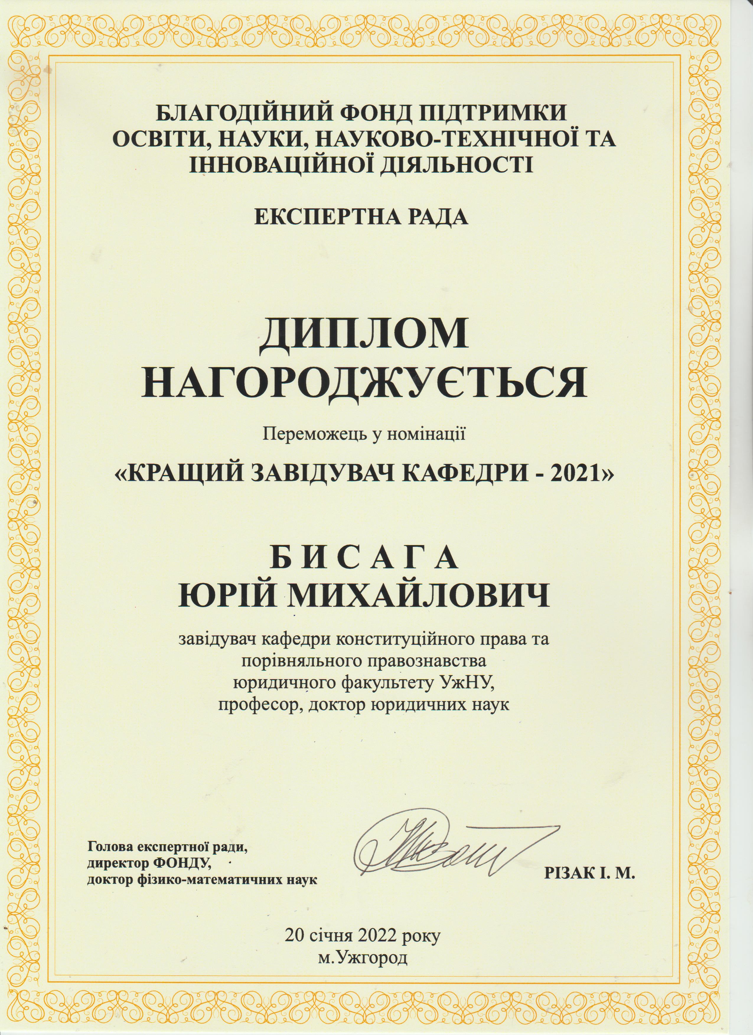 Вітаємо Юрія Михайловича Бисагу з перемогою в номінації "Завідувач кафедрою-2021"!