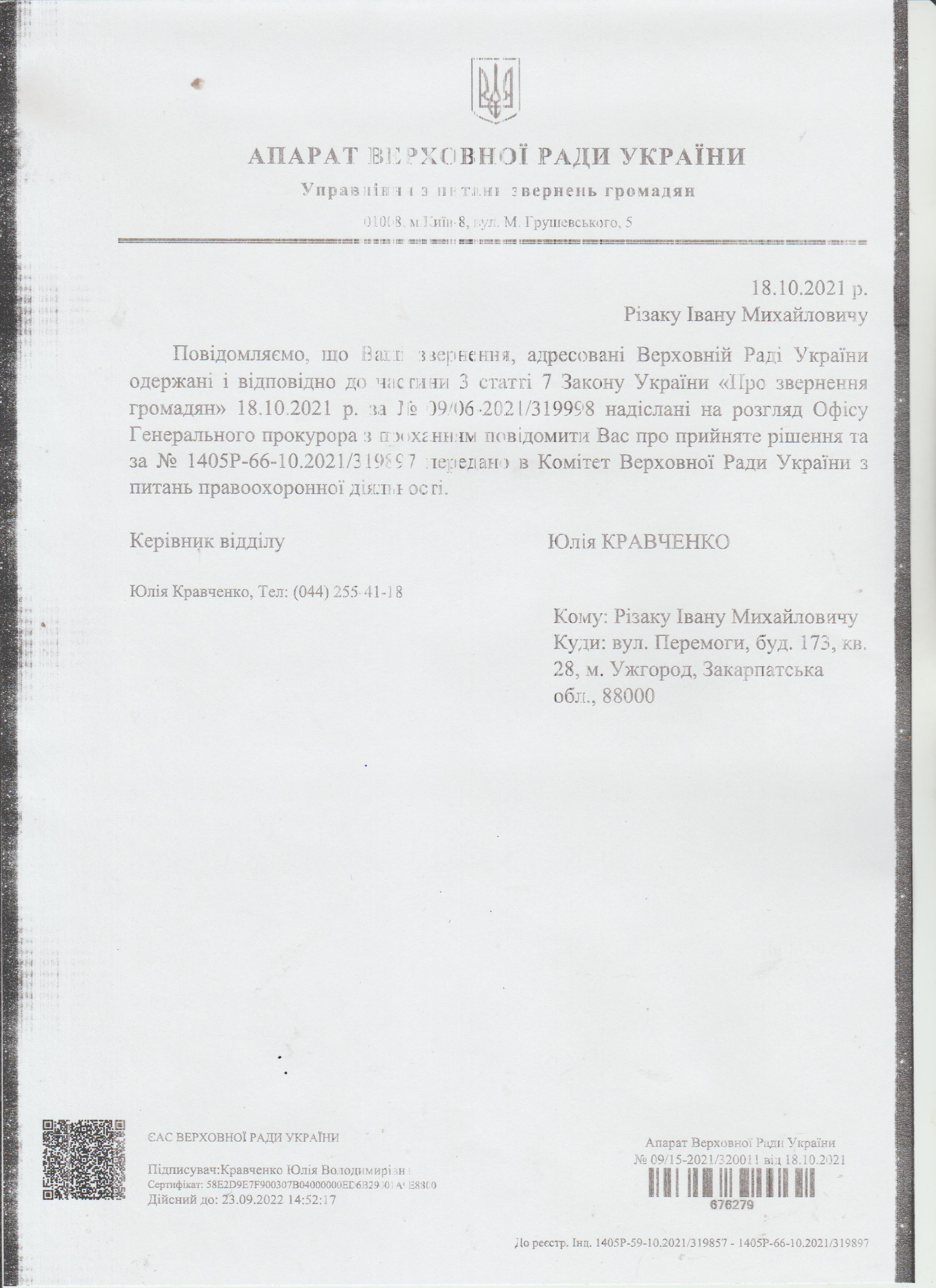 Є необхідність ознайомитися з матеріалами (зверненнями, повідомленнями, відповіддями тп ін.) в Генеральній прокуратурі України, СБУ, МВС, Службі зовнішньої розвідки України, Адміністрації Президента України, Закарпатській ОДА.