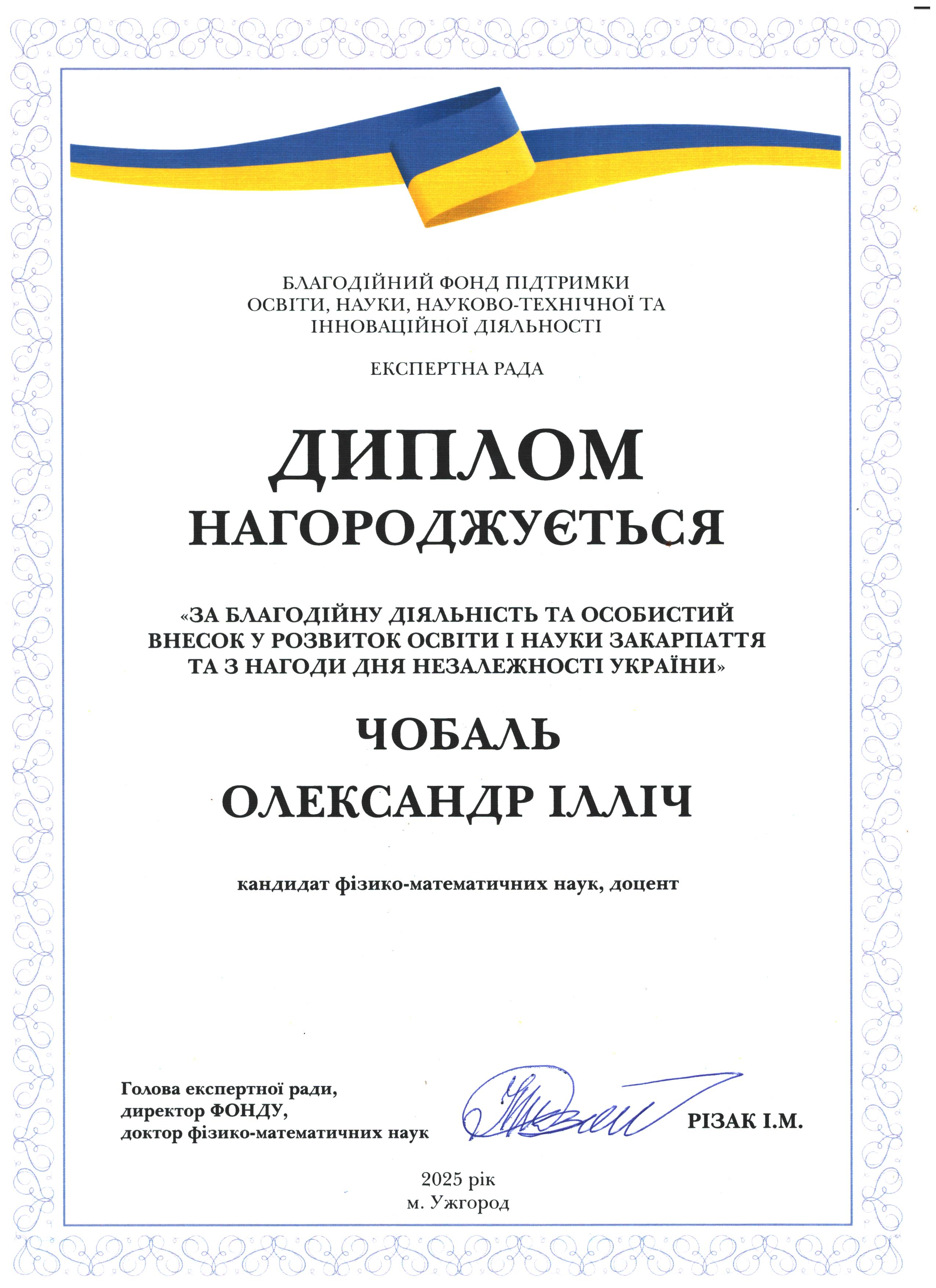 З повагою, доктор фізико-математичних наук, професор, Заслужений діяч науки і техніки України Василь Різак