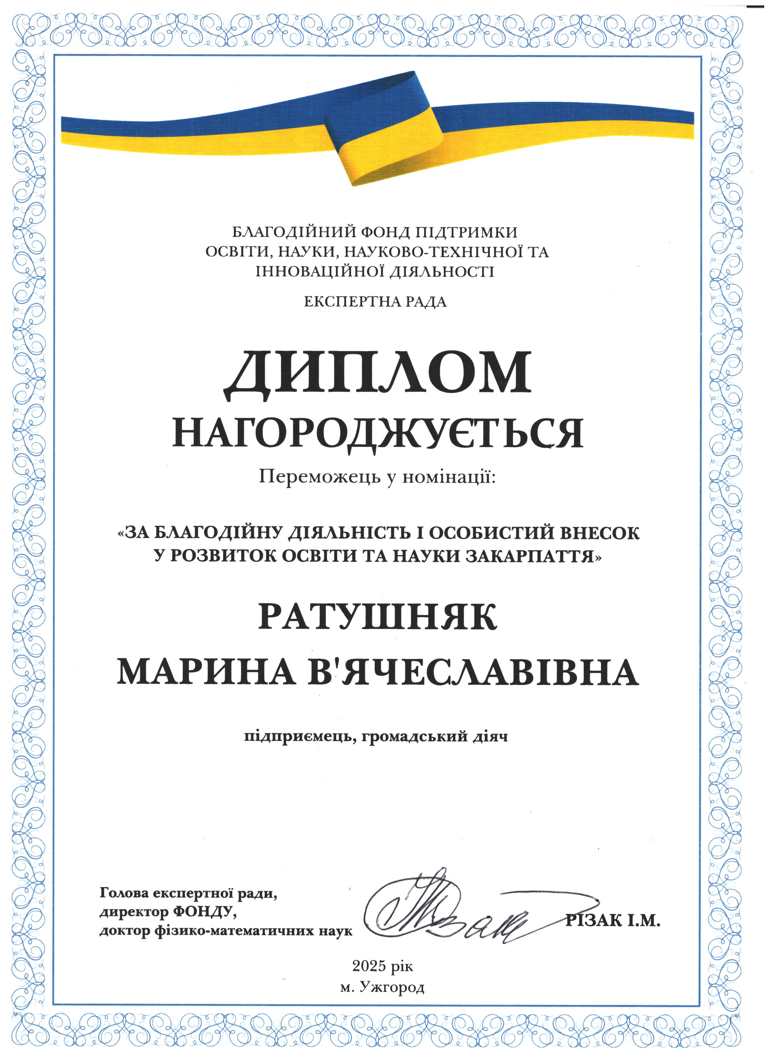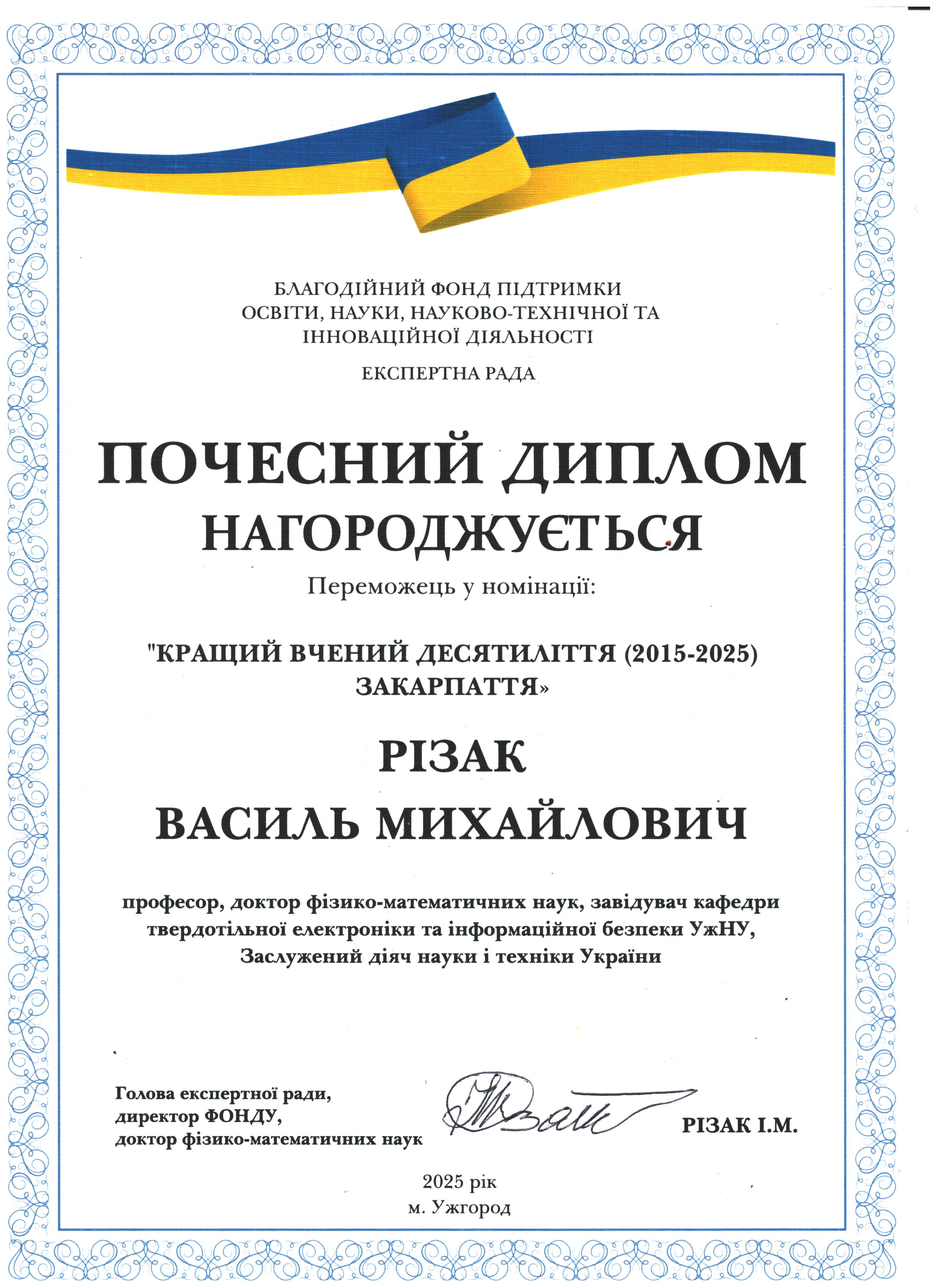 Іван Різак: дякую тобі, моя Галино Вікторівно, за витримку у нашій багатолітній боротьбі за честь сім'ї і не тільки, Рвдію за тебе і твої нові наукові успіхи у галузі органічної хімії завдяки підтримці колег з провідних вузів України. Тримайся!