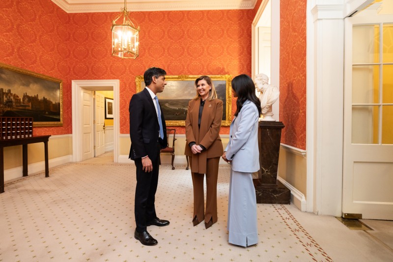 Олена Зеленська переказала подяку за нещодавній візит Прем’єр-міністра Великої Британії в Україну: «Візит вашого чоловіка до Києва минулого місяця ще більше зміцнив відносини між Україною та Великою Британією.
