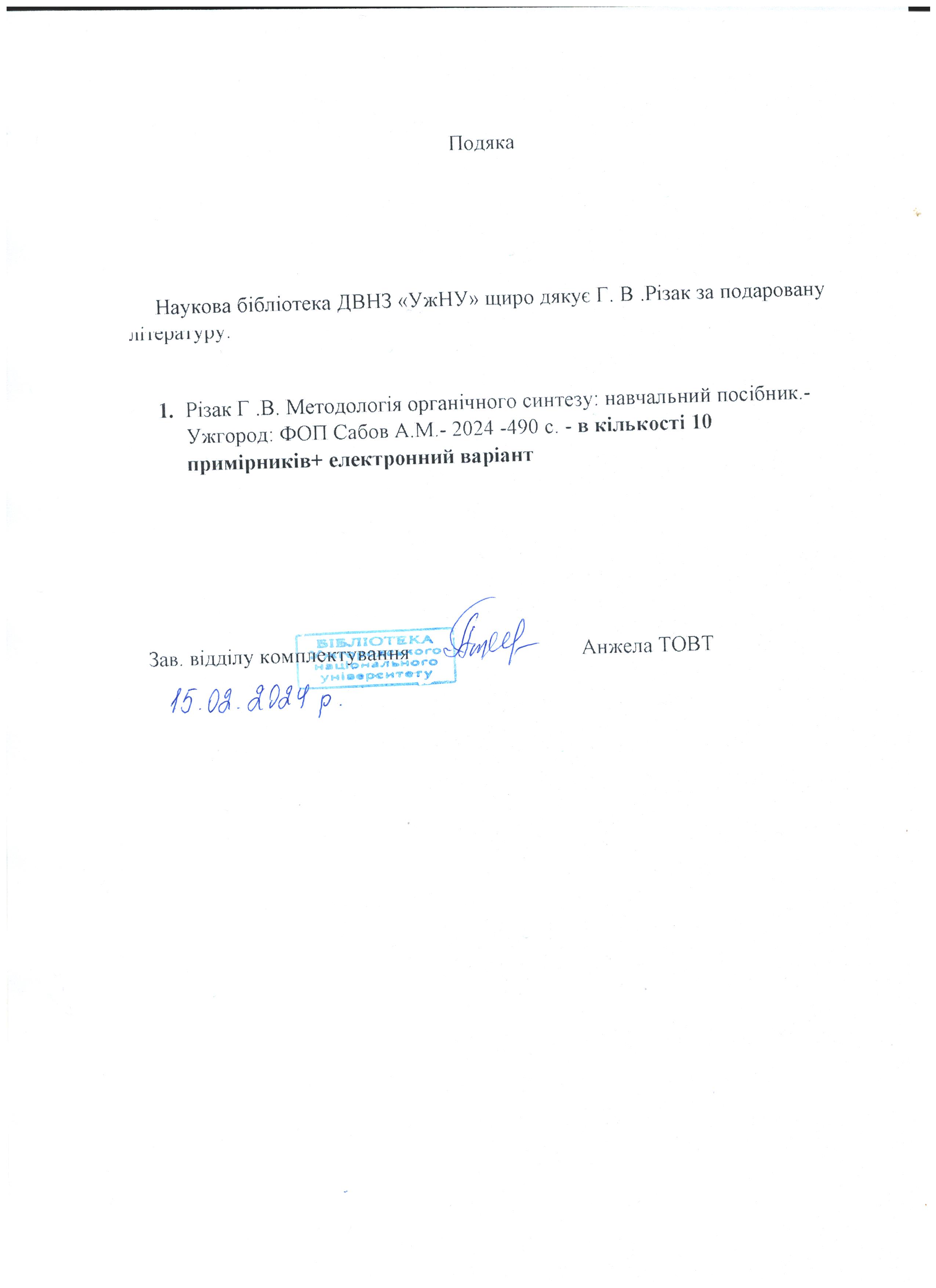 Уже у цьому семестрі студенти магістри Навчально-наукового інституту хімії та екології УжНУ мають змогу безкоштовно користуватися дуже сучасним навчально-науковим посібником під час вивчення непростого спецкурсу Методологія органічного синтезу, підготовленого відомою науковицею та викладачкою Галиною Вікторівною Різак.