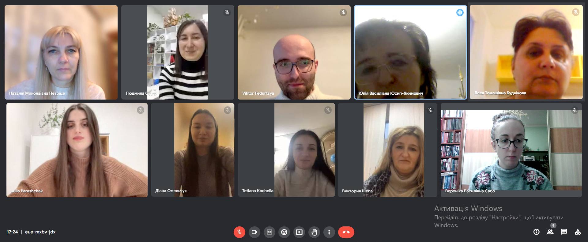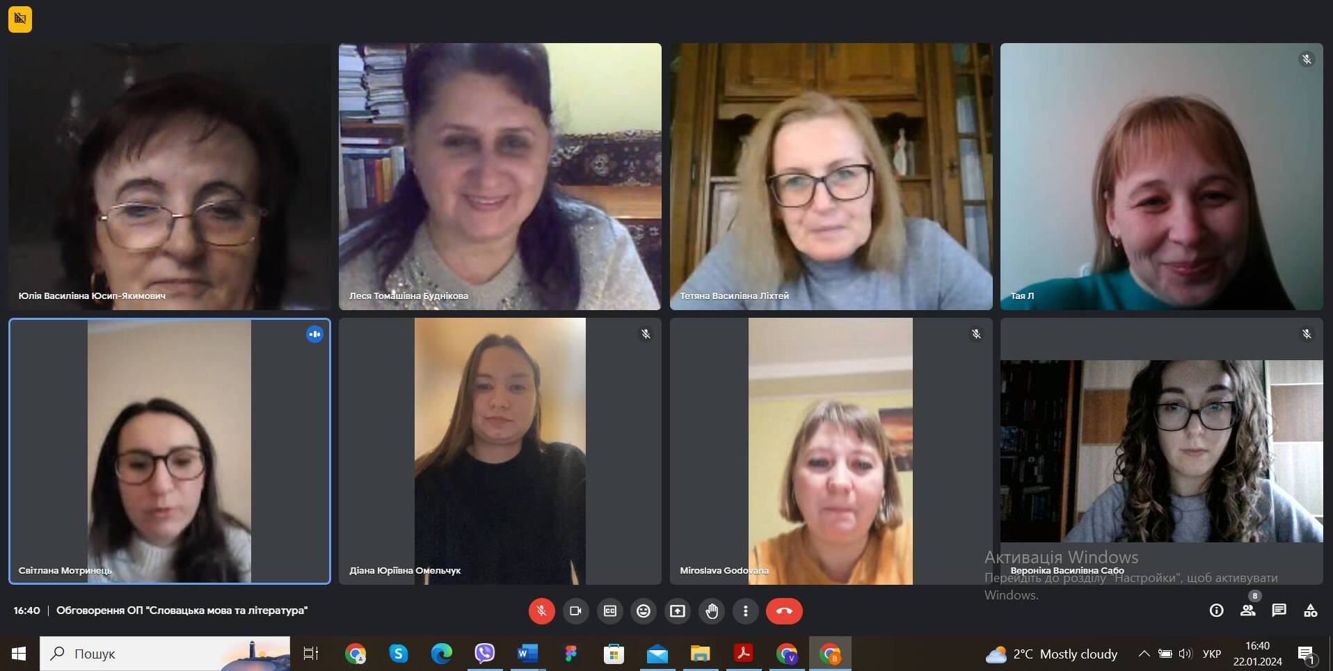 В обговоренні взяли участь роботодавці – викладачі словацької мови ЗСО краю, де викладається словацька мова, – Т. Лашкай (заступниця директора з навчально-виховної роботи Мукачівської загальноосвітньої школи І–ІІІ ступенів № 13), С. Мотринець (викладачка словацької мови Мукачівської загальноосвітньої школи І–ІІІ ступенів № 20 ім. О. Духновича), М. Годована (викладачка словацької мови та літератури Перечинського ліцею), випускниці освітньої програми, а також представниці робочої групи Л. Буднікова (гарант ОП), Н. Петріца (завідувачка кафедри словацької філології), доцентки кафедри Ю. Юсип-Якимович та Т. Ліхтей, асистентка кафедри В. Сабо та здобувачка ОП «Словацька мова та література» Д. Омельчук.