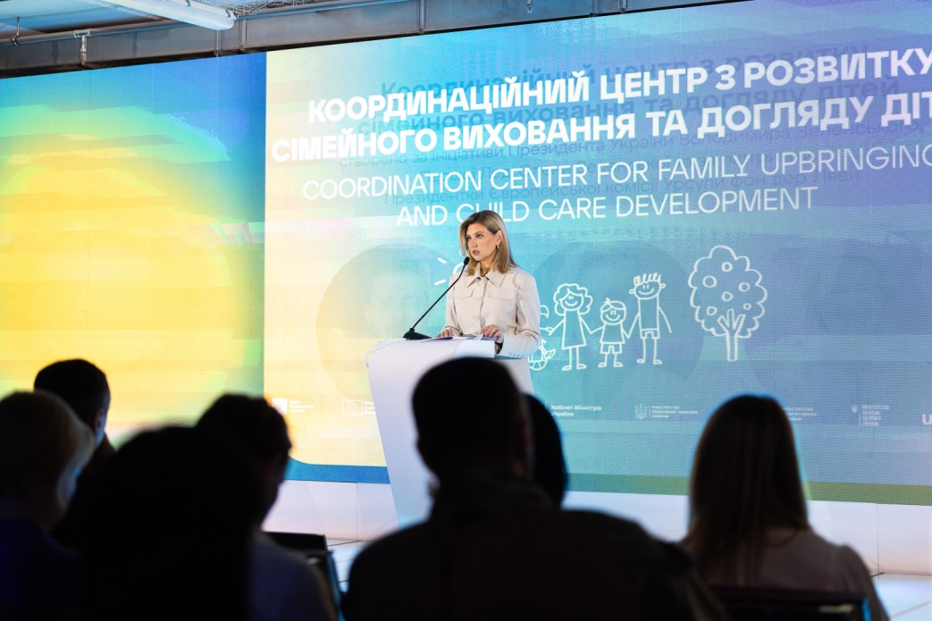 Перша леді України Олена Зеленська взяла участь у презентації Координаційного центру з розвитку сімейного виховання та догляду дітей, який створено з ініціативи Президента Володимира Зеленського та його дружини за підтримки Президентки Європейської комісії Урсули фон дер Ляєн.