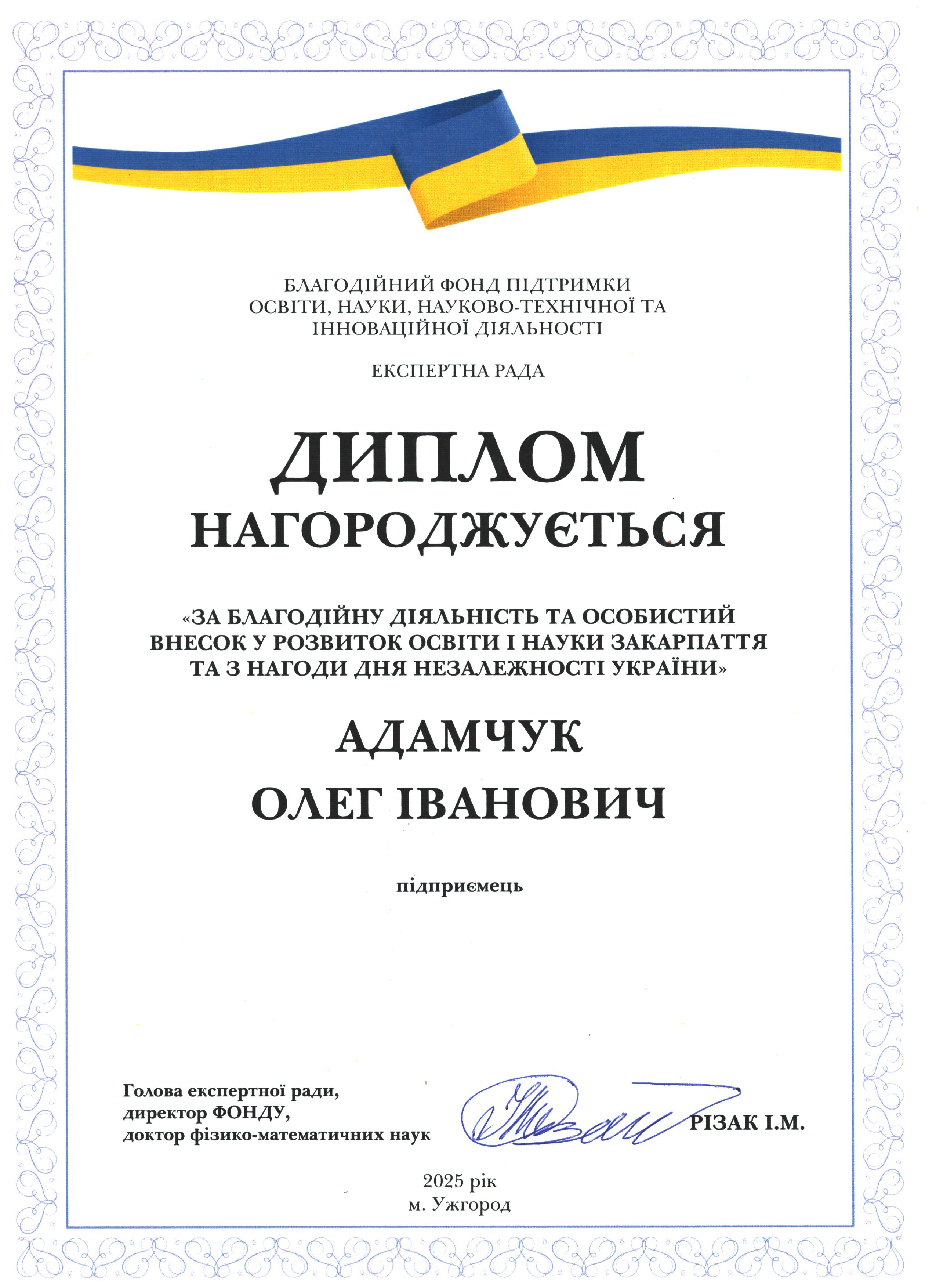 Дякуємо Олегу Івановичу Адамчуку за підтримку освіти і науки Закарпаття!