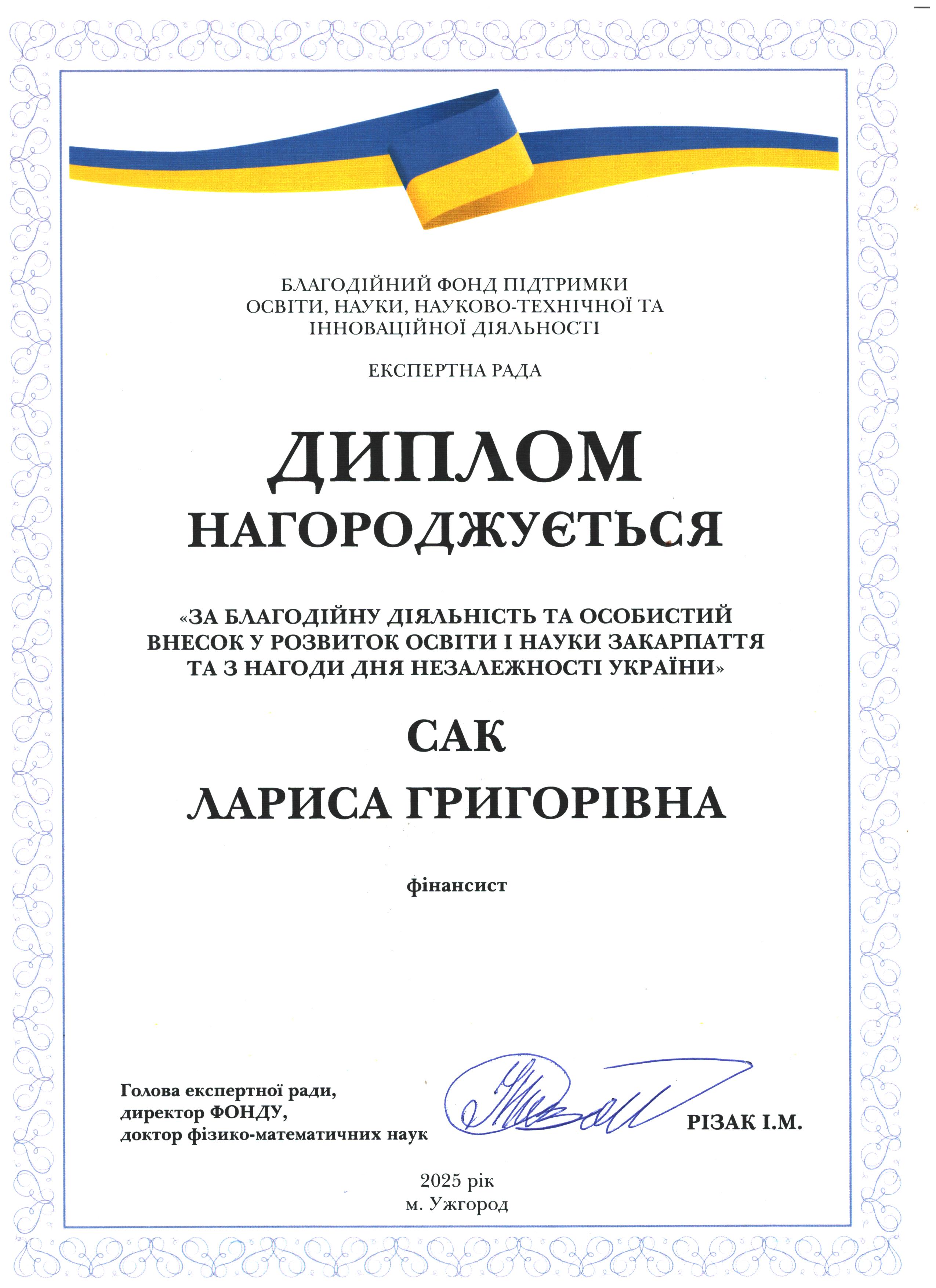 Дякуємо Ларисі Григорівні Сак за підтримку освіти і науки Закарпаття!