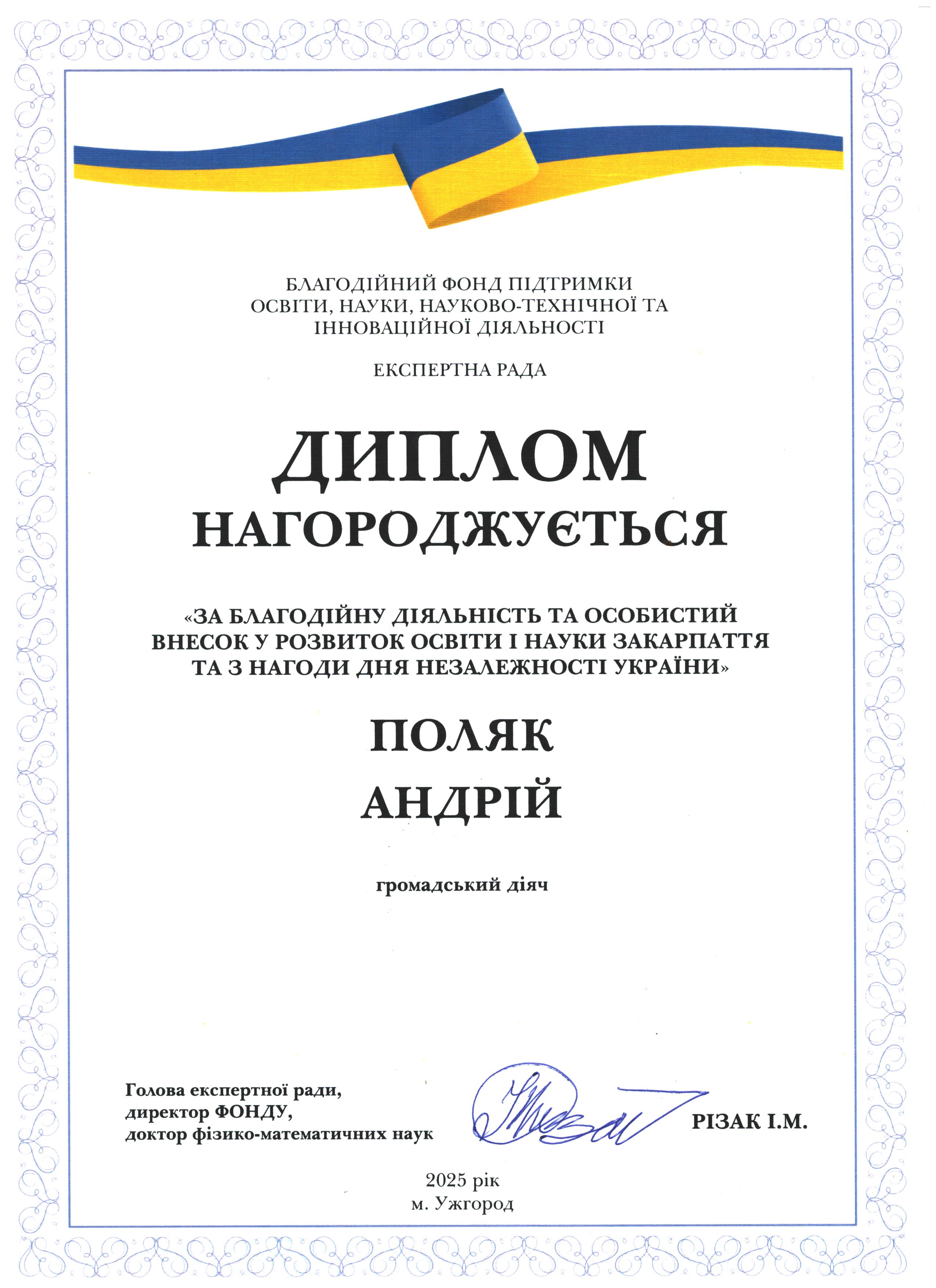 Дякуємо Андрію Поляку за підтримку освіти і науки Закарпаття!