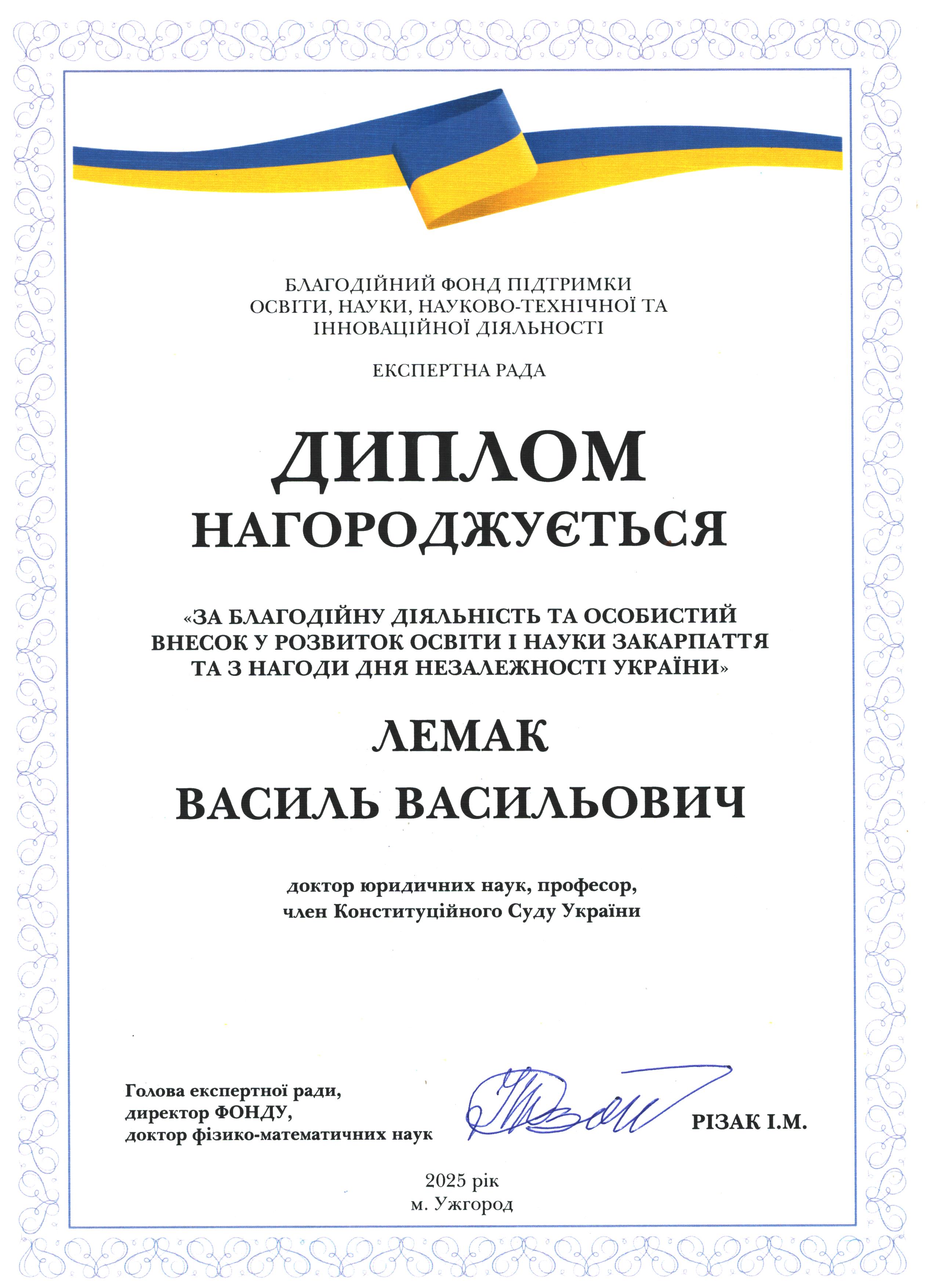Дякуємо Василю Васильовичу Лемаку за підтримку освіти і науки Закарпаття!