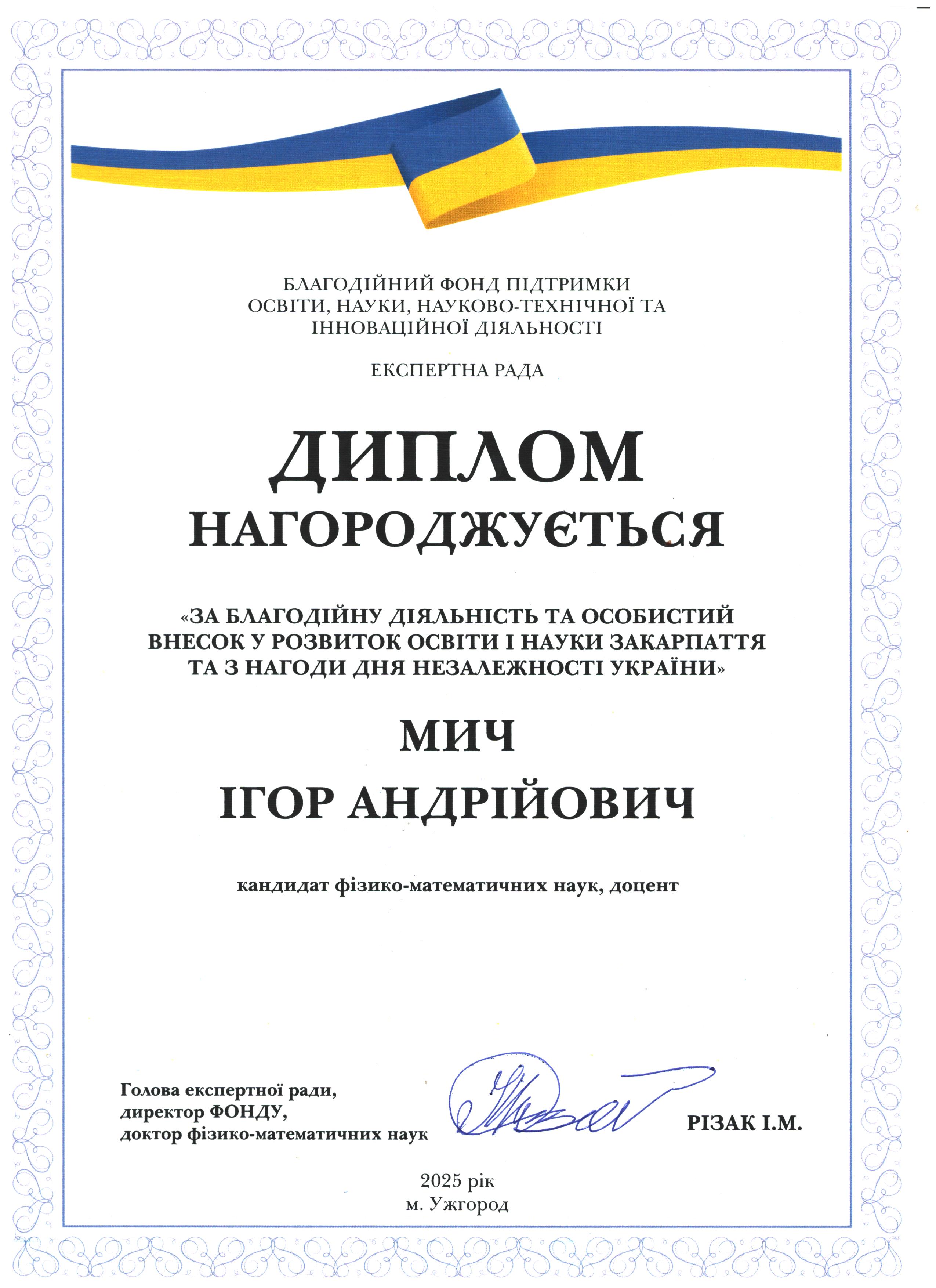 Дякуємо Ігорю Андрійовичу Мичу за підтримку освіти і науки Закарпаття!