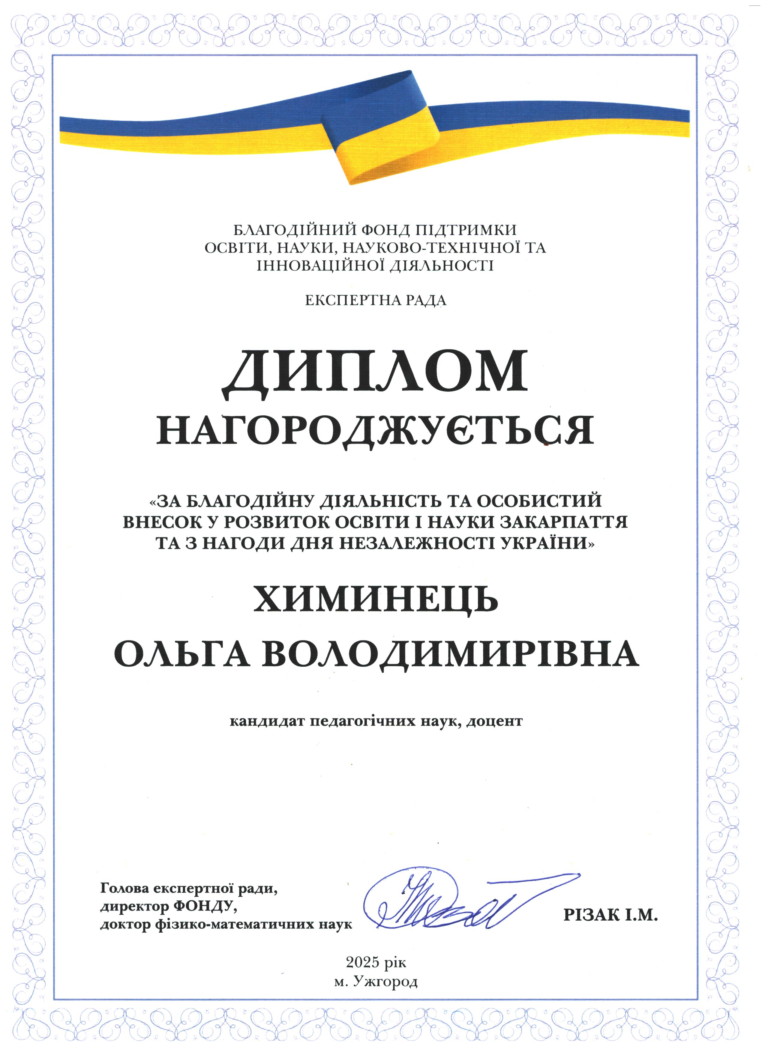 Дякуємо Ользі Володимирівні Химинець за підтримку освіти і науки Закарпаття!