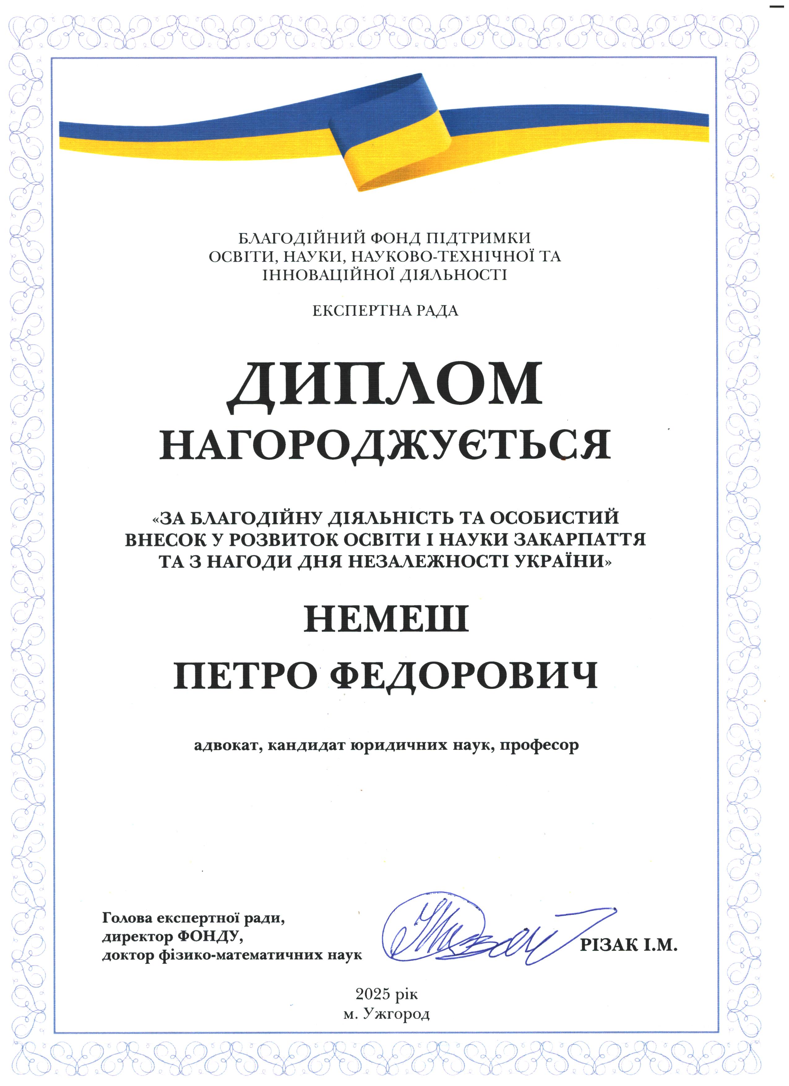Дякуємо Петру Федоровичу Немешу за підтримку освіти і науки Закарпаття!