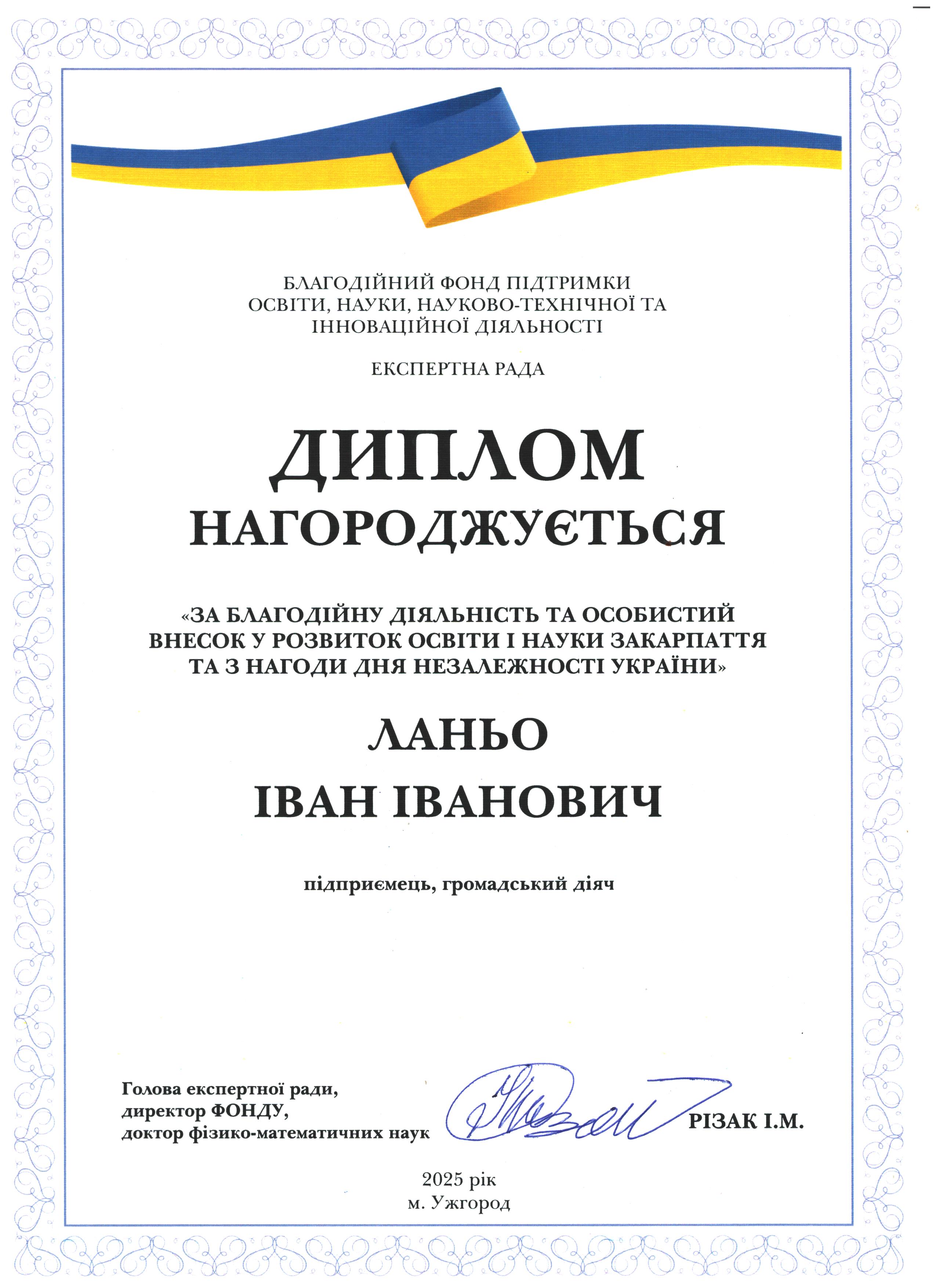 Дякуємо Івану Івановичу Ланьо за підтримку освіти і науки Закарпаття!