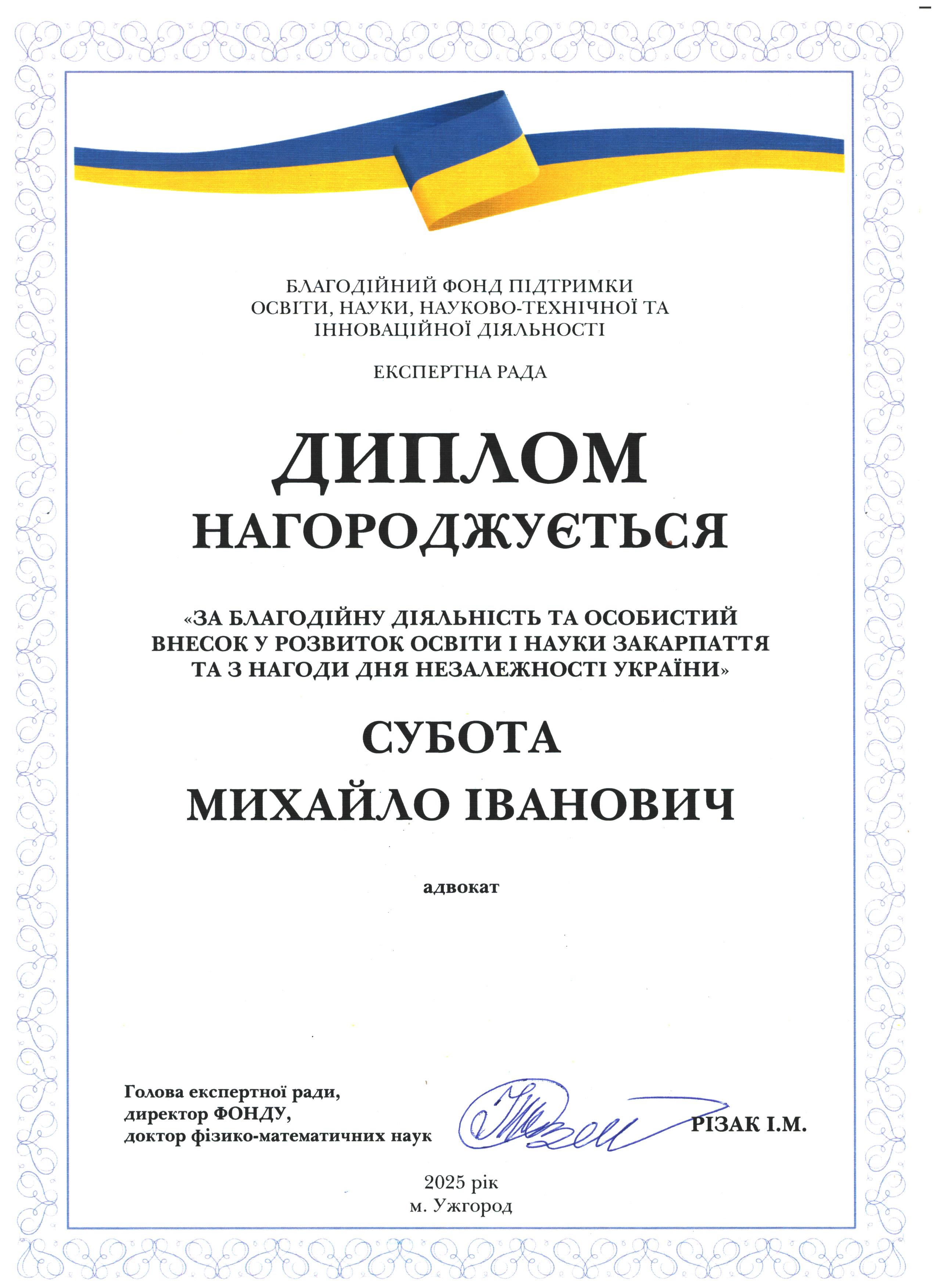 Дякуємо Михайлу Івановичу Суботі за підтримку освіти і науки Закарпаття!