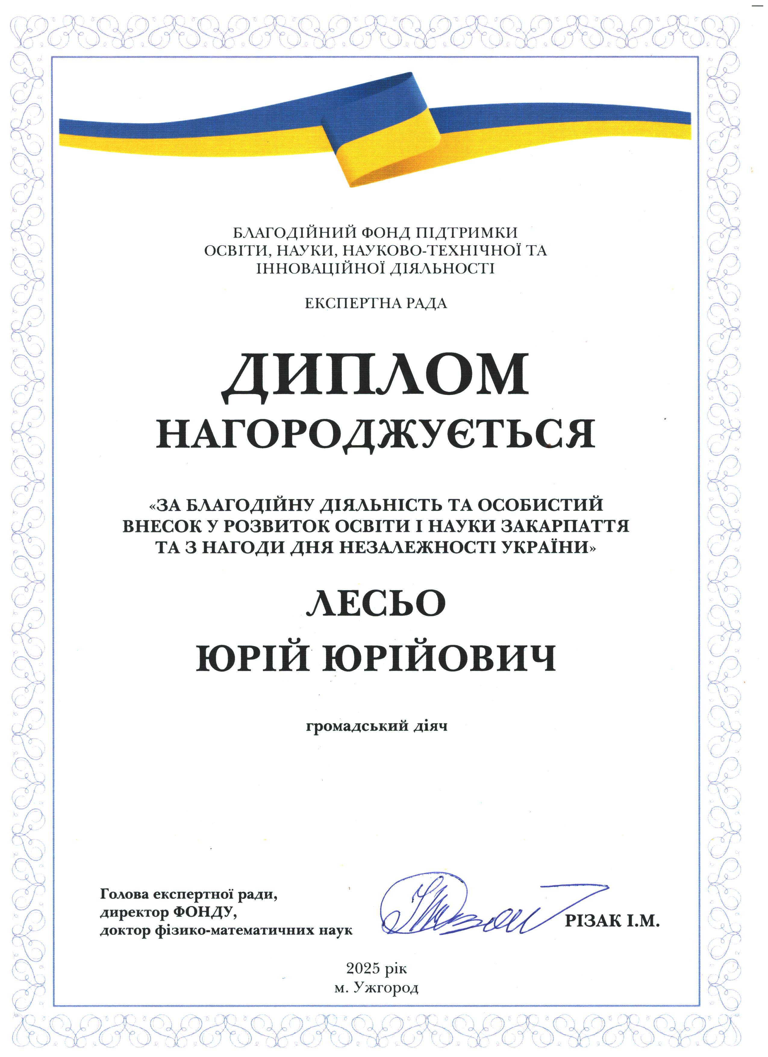 Дякуємо Юрію Юрійовичу Лесьо за підтримку освіти і науки Закарпаття!