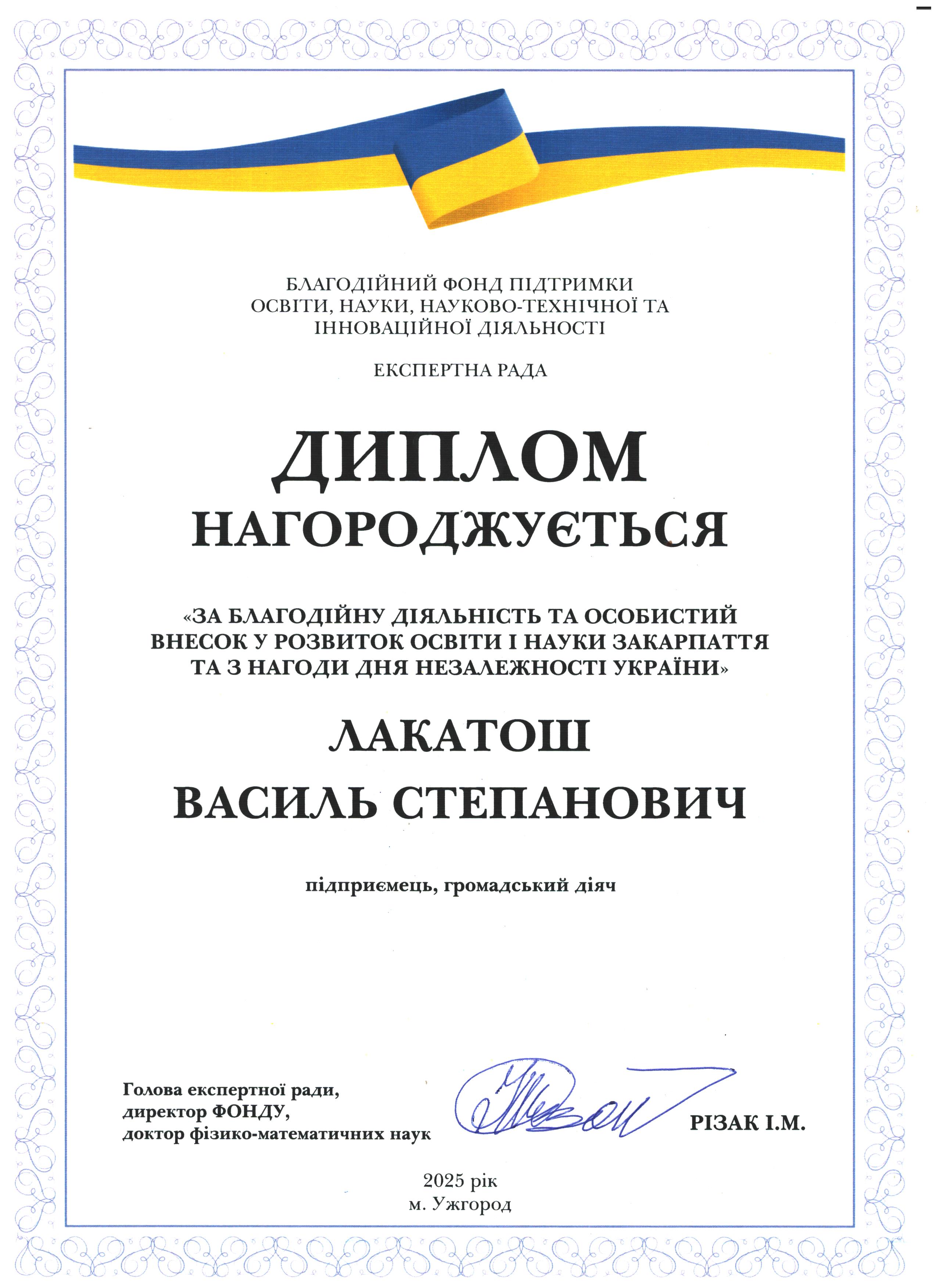 Дякуємо Василю Степановичу Лакатошу за підтримку освіти і науки Закарпаття!
