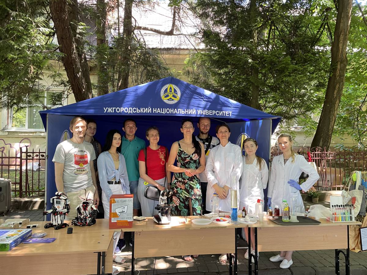 В Ужгороді на набережній біля Лінгвістичної гімназії ім. Т. Г. Шевченка з ініціативи Центру інновацій та розвитку УжНУ представники навчально-наукового інституту хімії та екології, біологічного факультету й факультету інформаційних технологій до Дня захисту дітей організували для місцевих школярів майстер-клас із робототехніки, демонстрували експерименти з хімії та знайомили з біорізноманіттям.