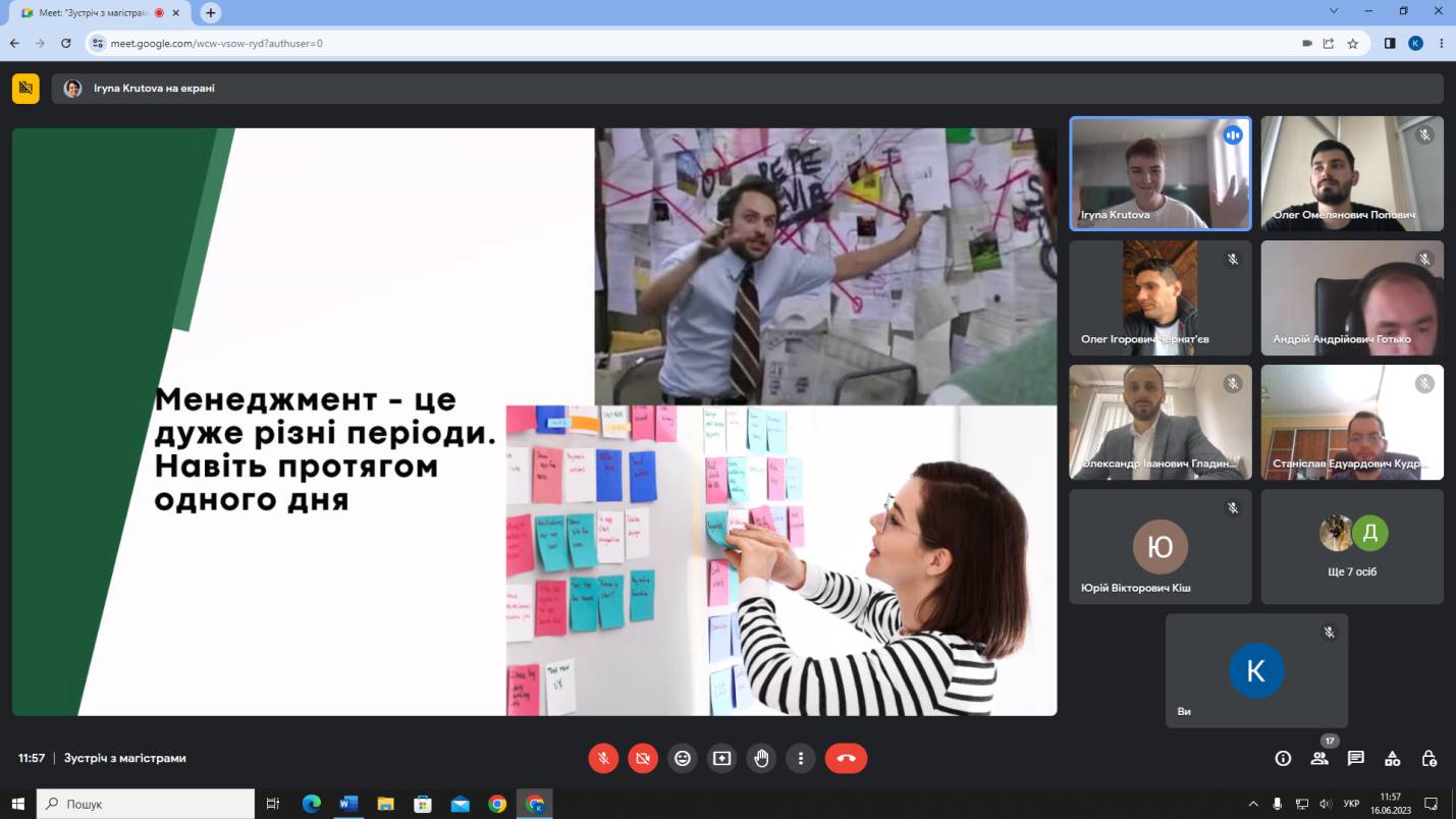 Під час онлайн-зустрічі Ірина розповіла про головну складність менеджменту, власне 5 основних помилок менеджерів-початківців, а також поділилася особистим досвідом роботи коучем. Зустріч з Іриною Крутовою виявилася надзвичайно пізнавальною й корисною для студентів.