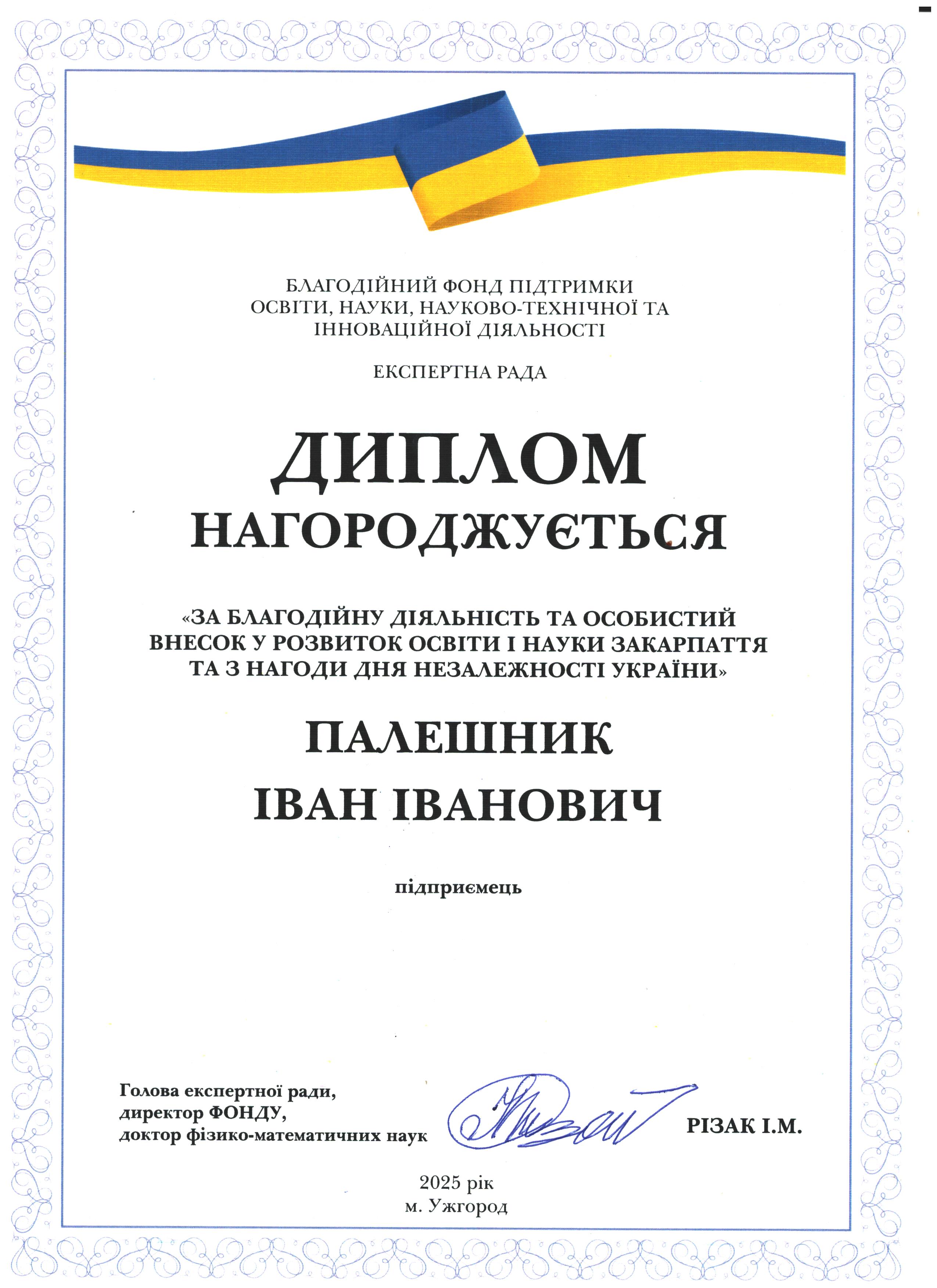Дякуємо Івану Івановичу Палешнику за підтримку освіти і науки Закарпаття!